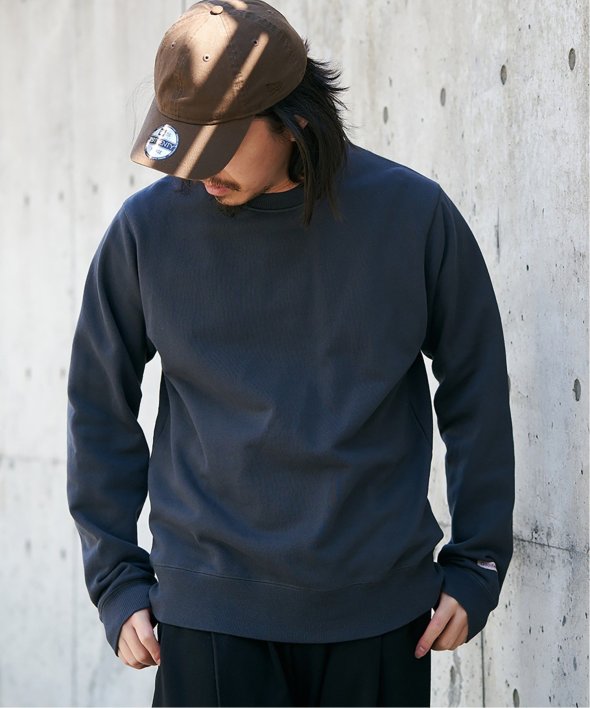 USAコットンを使用したシンプルな無地のクルーネックトレーナー。