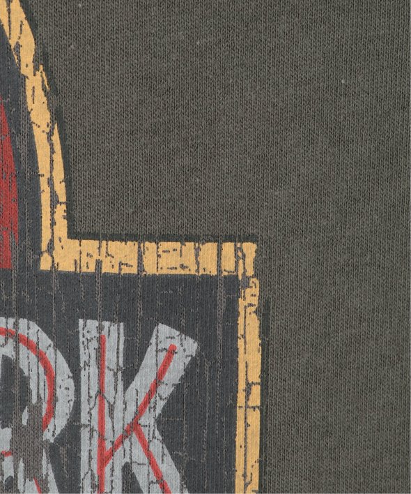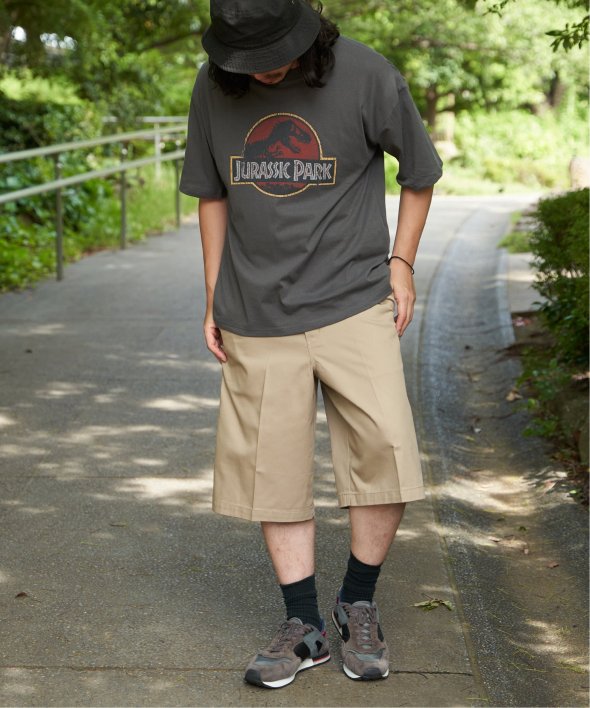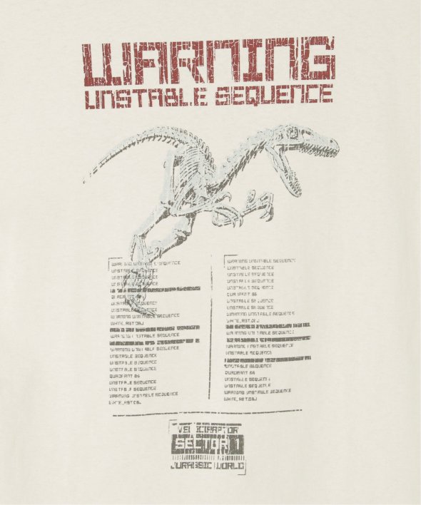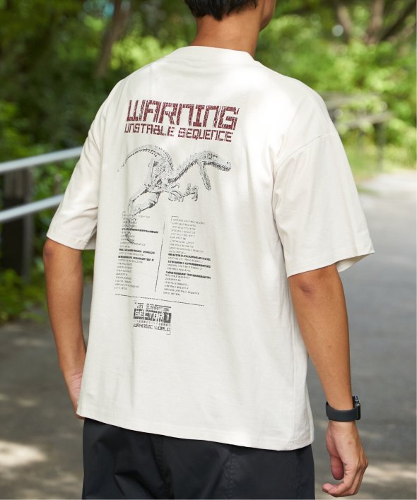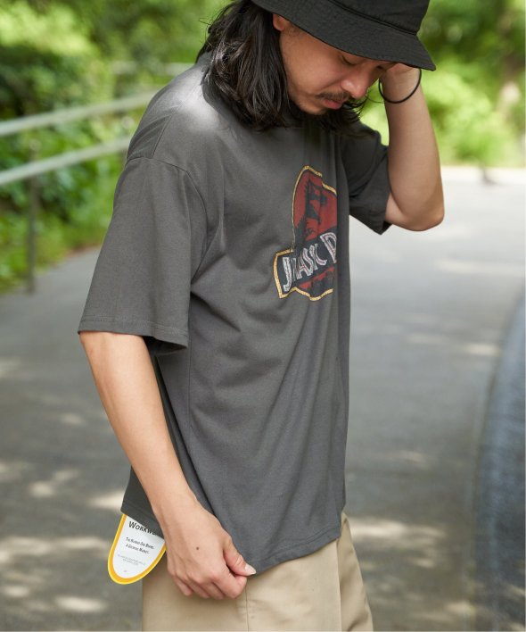 ジュラシック・パークのロゴをあしらったアイコニックなプリントに、フェード加工を施して古着のような風合いに仕上げました。
