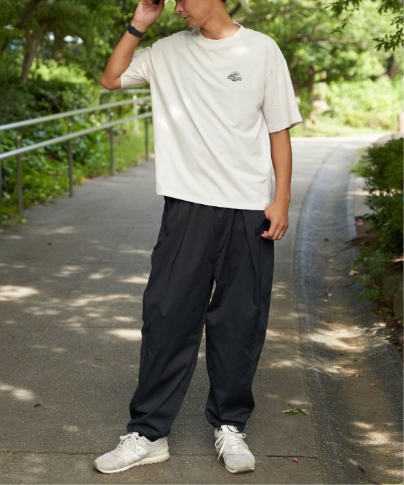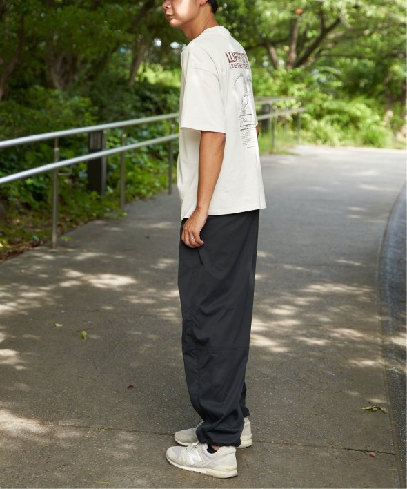 メンズはパラシュートパンツやカーゴパンツと合わせて、ストリート感のあるスタイルに。
