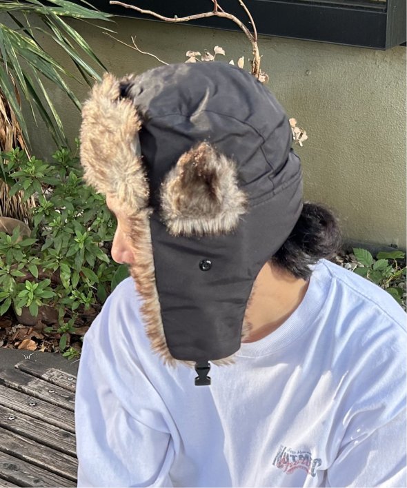 フェイクファー×中綿入りでとってもあたたかなフライトキャップ。