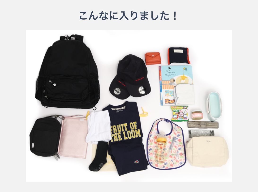 荷物をすっきり分けられます - ガバっと大きく開いた3つの入れ口から、中も3つに分かれています。 パパ、ママ、お子さんなどで分けていただいてもいいですし、旅行の際にその日の着替えを分けるときにもとっても便利です。