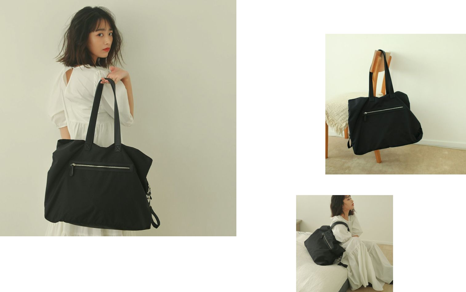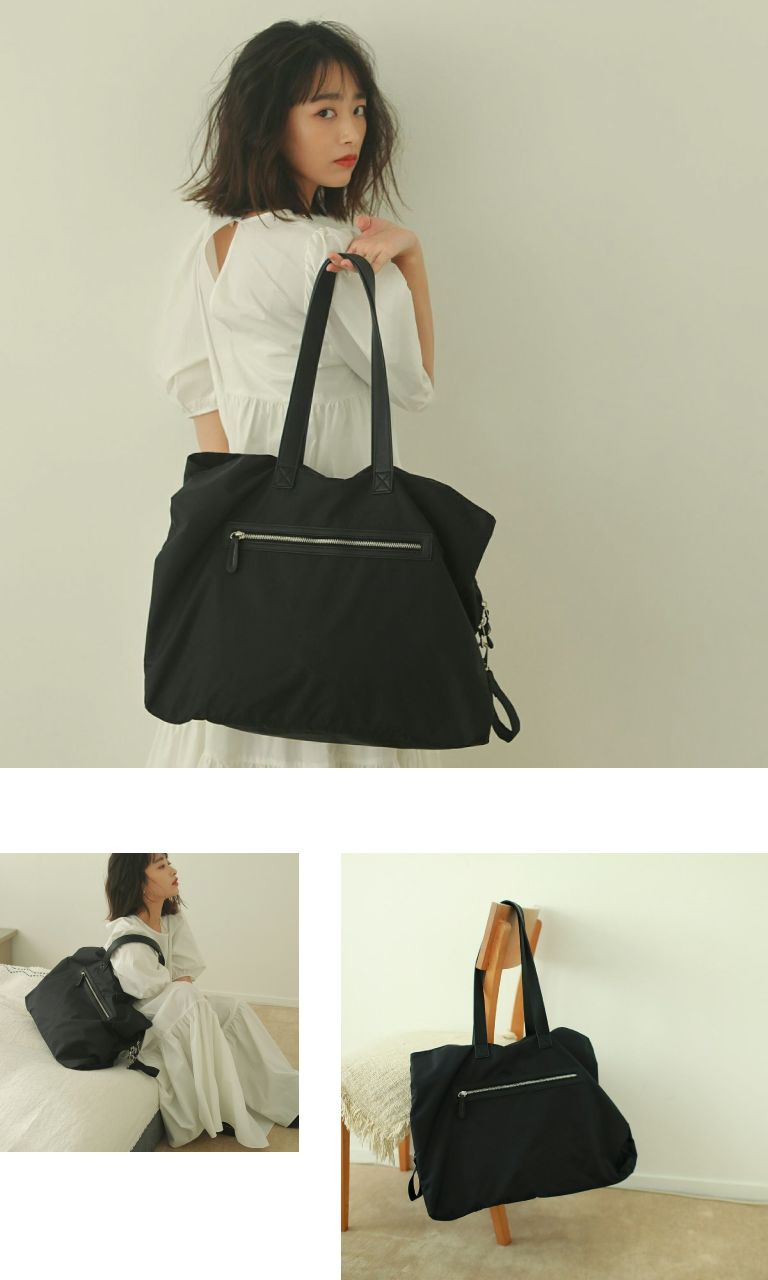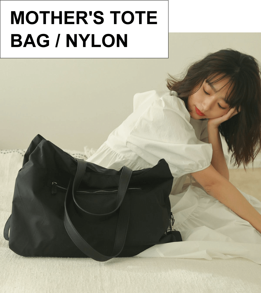 よごれ知らずな頑丈トート - 大人気のマザーズトートが、高密度ナイロン生地を使用し軽量、丈夫になって生まれ変わりました。 大容量で大きな入れ口が3ヶ所あり、荷物を大きく3つに分けることが可能です。パパ、ママ、お子さんなどで分けていただいてもいいですし、旅行の際その日の着替えを分けるときにも便利です。素材のナイロンにはテフロン加工が施されているので、急な雨でもバッグがびしょびしょになったりしません、泥や油汚れがついてもさっとひと拭きで汚れもキレイに。外側に大きく取り付けられたジッパーポケットの中も同素材なので、お子さまの湿った洋服やタオルを入れておいても、滲みづらいのが嬉しいところ。機能満載の大容量トートです。