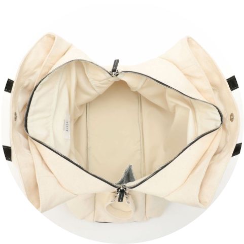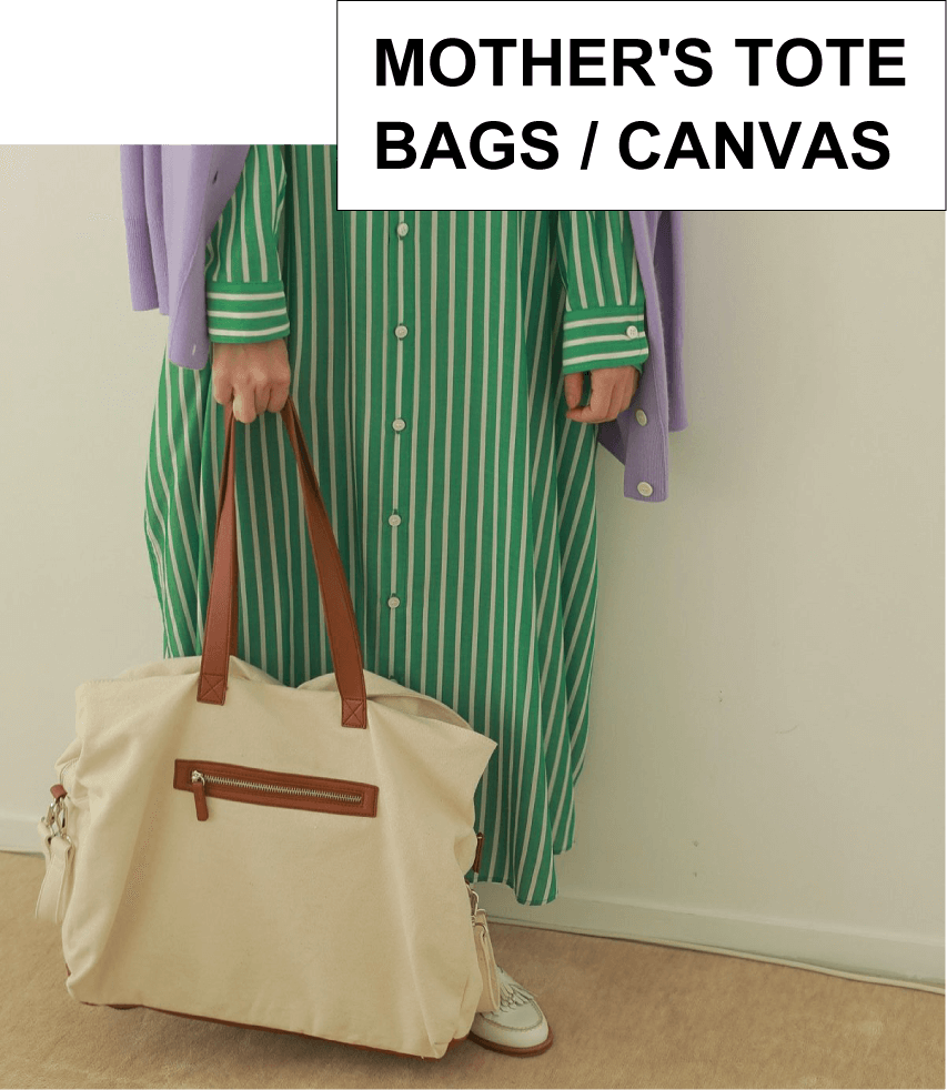 二色展開で待望のアップデート - 大人気のマザーズトートが、16ozのしっかりしたキャンバス生地を使用し軽量、丈夫になって生まれ変わりました。 休日のお出かけやちょっとした旅行にも、荷物が中で分かれているので、すっきりと収まります。オフホワイトのベースにエコレザーがアクセントになっているので、カジュアルなファッションにもぴったり合わせやすい。 永く使いたいものだから、ベーシックだけどママのこだわりをしっかり詰めこんだ機能的なマザーズトートです。