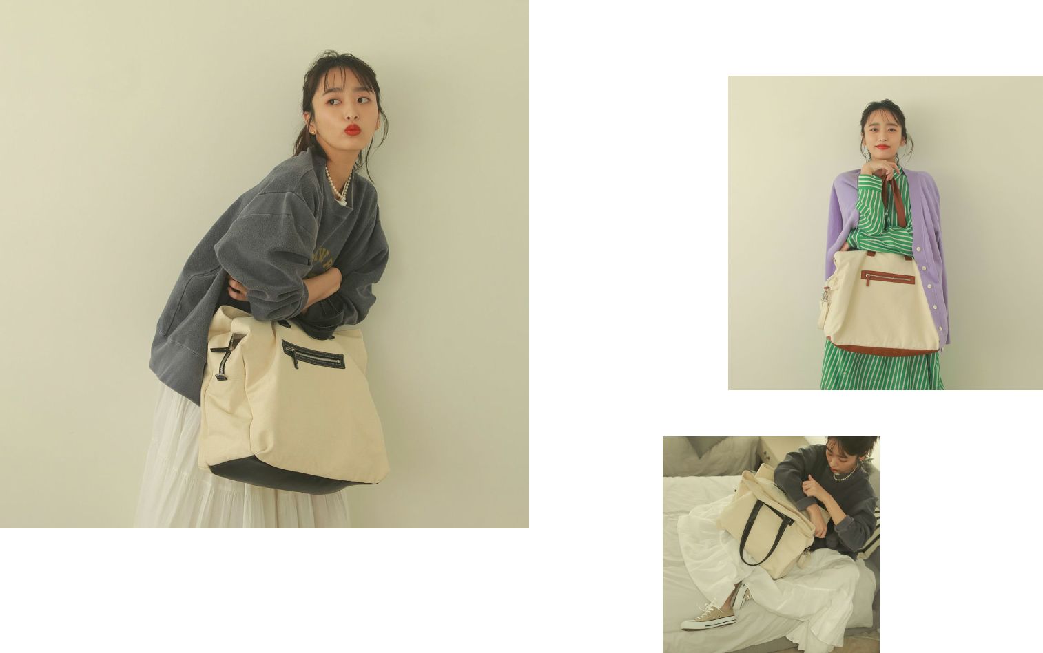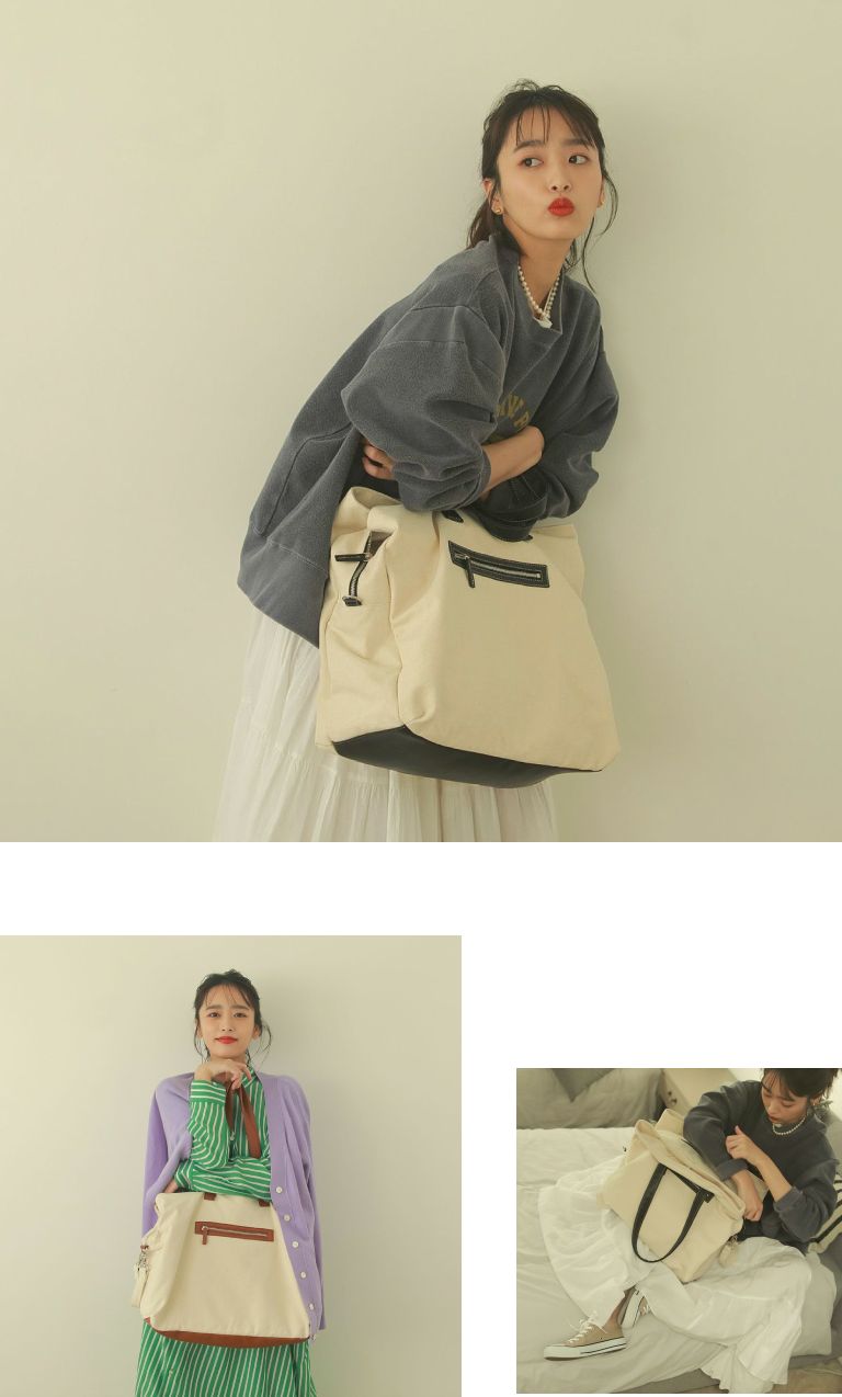 - 発売の度にご好評をいただいているキャンバストートです。なんといってもやっぱりたくさん荷物が入るのがうれしいの。 子どもの荷物はもちろん、大きい雑誌まで入っちゃいます。荷物が重いときにはバギーに取り付けるための専用ベルトがついているのでとても便利です。キャンバスはカジュアルに合わせやすいのでついついいつもこればかり持っちゃいます。