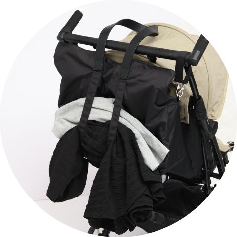 長い移動もらくらく - 両サイドには丸いフック型のループが付いており、フックがないベビーカーにも掛けられます。バッグを持っている時間が減らせてママ・パパの負担も少なくなりますね。赤ちゃんと一緒にアクティブに長い時間使用する旅行バッグとしてもおすすめです。