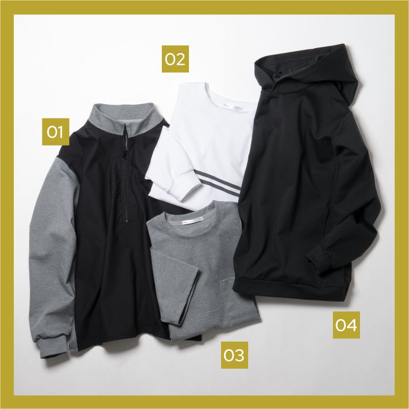 寒い季節のアクティブシーンにはアウターの代わりにデザイン豊富なプルオーバーを。ストレッチハニカム素材とポンチ素材を組み合わせた程よいハリ感がスポーティすぎないまさに大人のタウンユースなアクティブウェアを実現。モノトーンでシンプルにまとめるのが◎