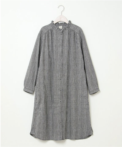トレンドのバンドカラーでニットとのレイヤードも楽しめる