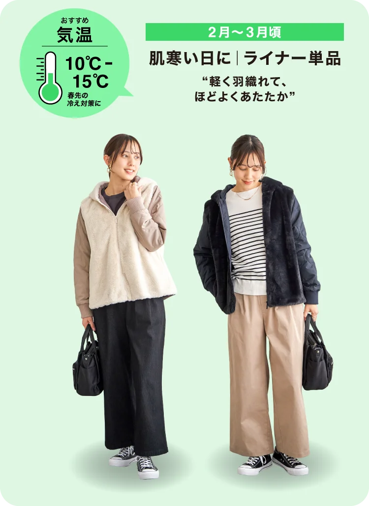 その日の寒さにちょうどいい着こなしが見つかります。