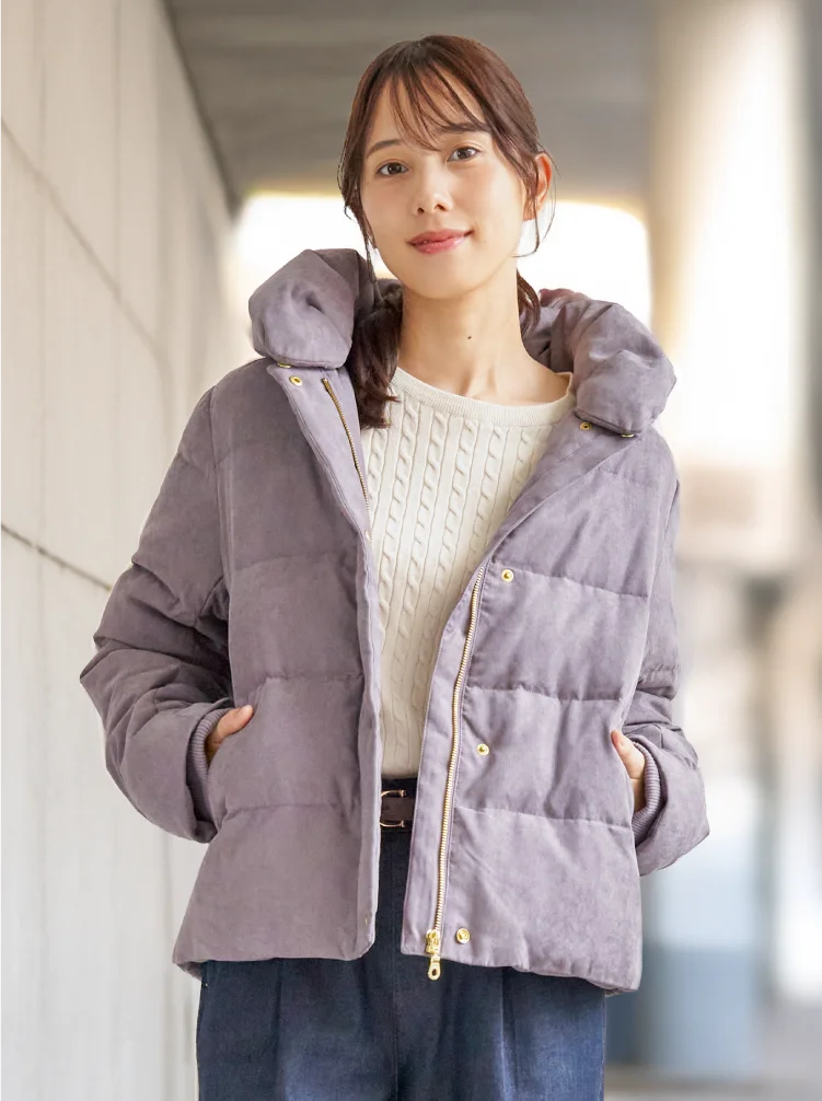 軽くてあたたかい、ダウン×フェザーの中わたを使用した2WAYダウンジャケット。襟の取り外しで印象を変えられ、洗える仕様だからデイリー使いも安心。上品な細コール素材で、通勤やきれいめシーンにも取り入れやすい一着です。