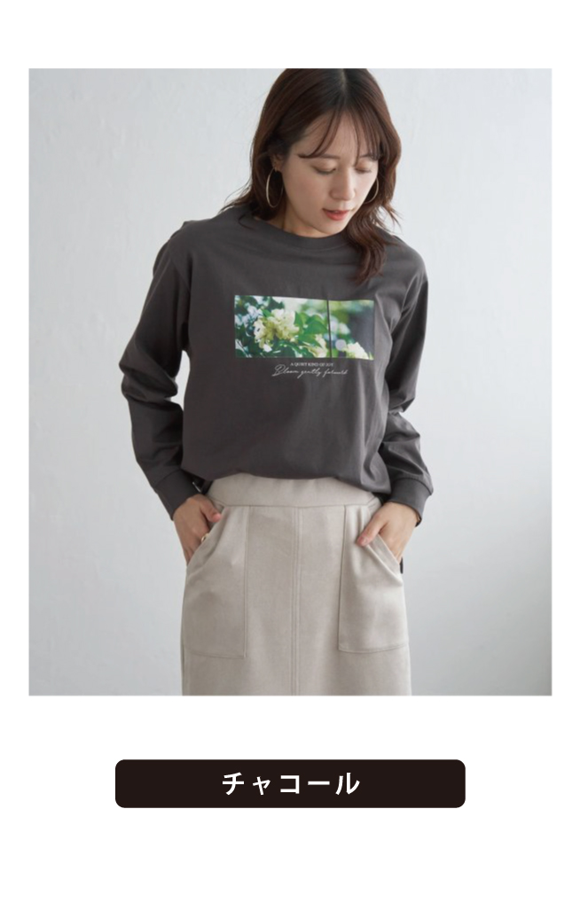 肌触りがよく、使い勝手の良いロゴフォトプリントTシャツ。カジュアルなスウェット素材を使用していて、着回しのしやすいシンプルロゴやフラワープリントのデザインで、デニムやスカート、きれいめボトムとも相性良く着ていただけます。
