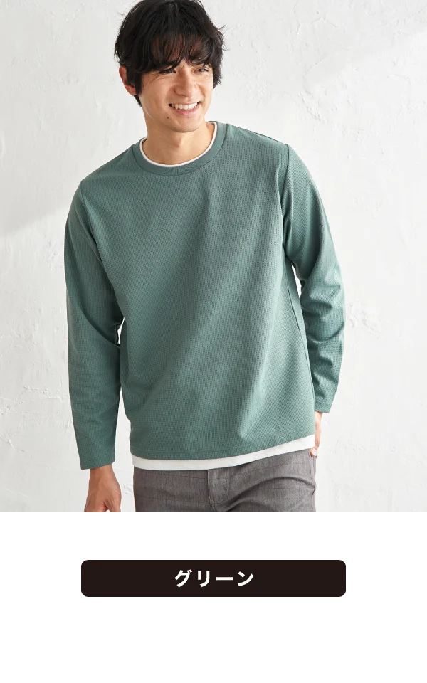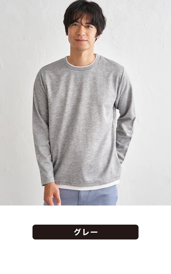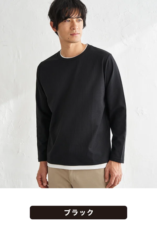 表面に凹凸感のあるピケ素材を使用し、さらりとした着心地が続く吸水速乾ロンT。インナーを重ねたようなレイヤード風デザインで、一枚でもこなれたスタイリングが完成します。今はインナーとして、春先は一枚着として活躍するロングシーズン対応の即戦力トップスです。