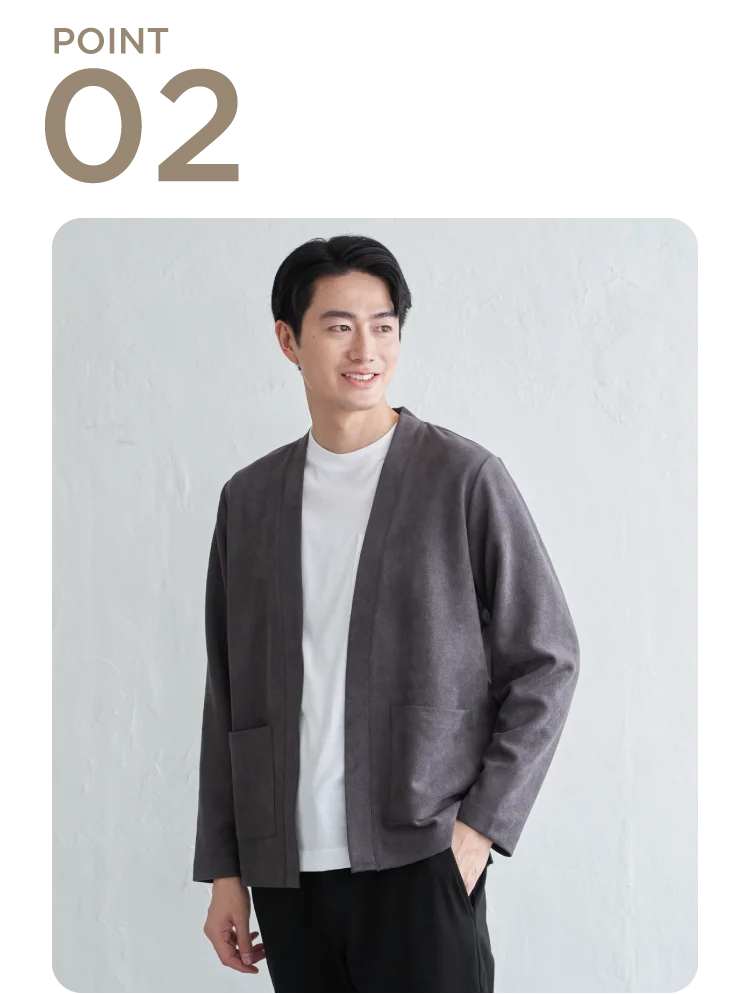 フェイクスエードのカーディガンとロンTがセットになった、着るだけでレイヤードが完成する便利なアイテム。上品な素材感で大人のカジュアルスタイルにもマッチします。それぞれ単品使いもでき、今から春先まで幅広い着こなしに対応できる即戦力トップスです。