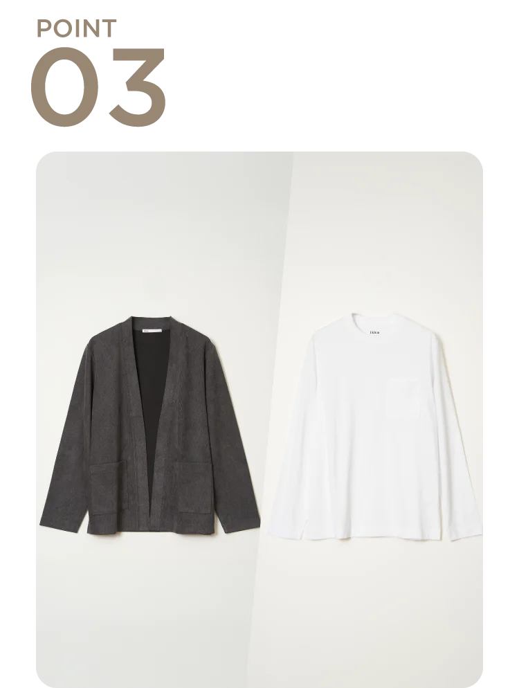 セットでレイヤードスタイルが完成。忙しい朝もコーデに迷いません