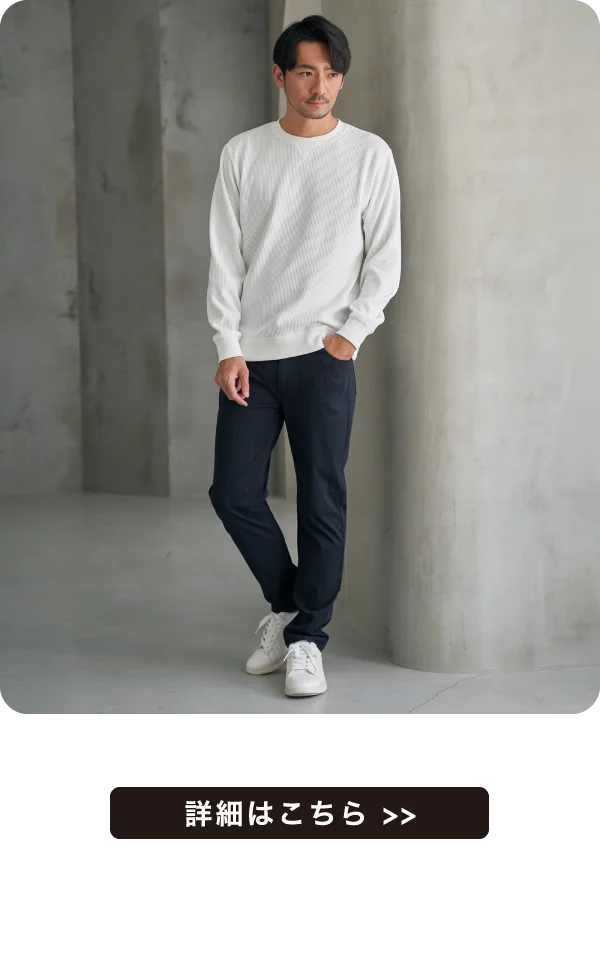 凹凸のあるピケ素材を使用。アウターを羽織ってもサマになります。