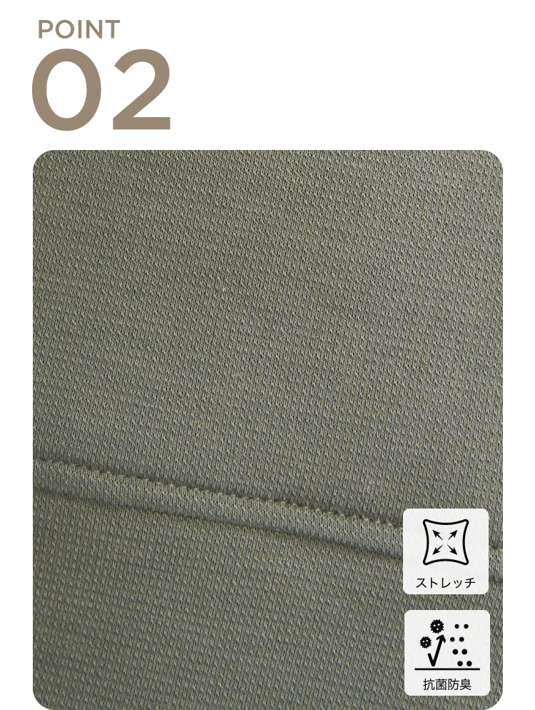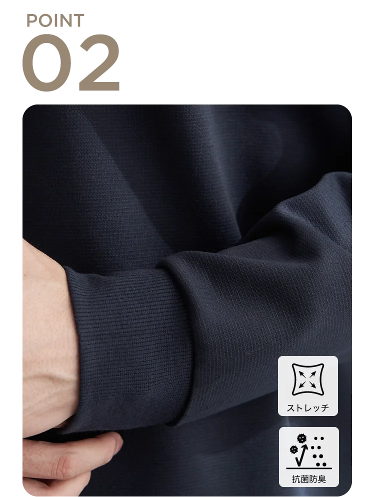 吸水速乾機能付きで快適な着心地。寒暖差のある汗ばむ季節でもドライな着用感をキープします。