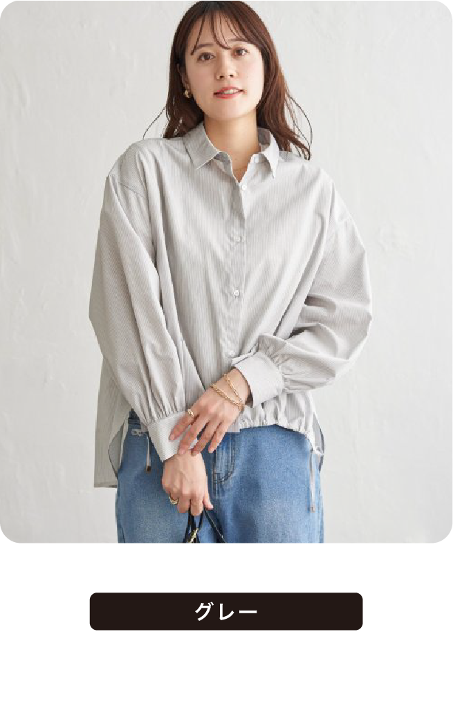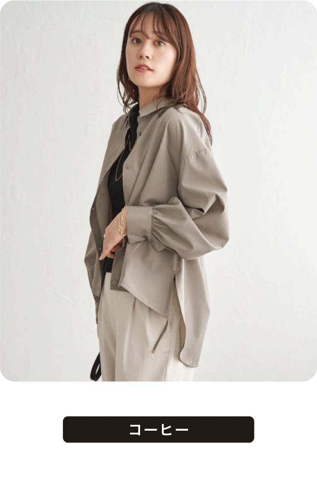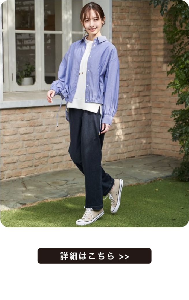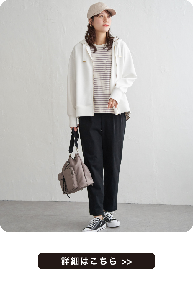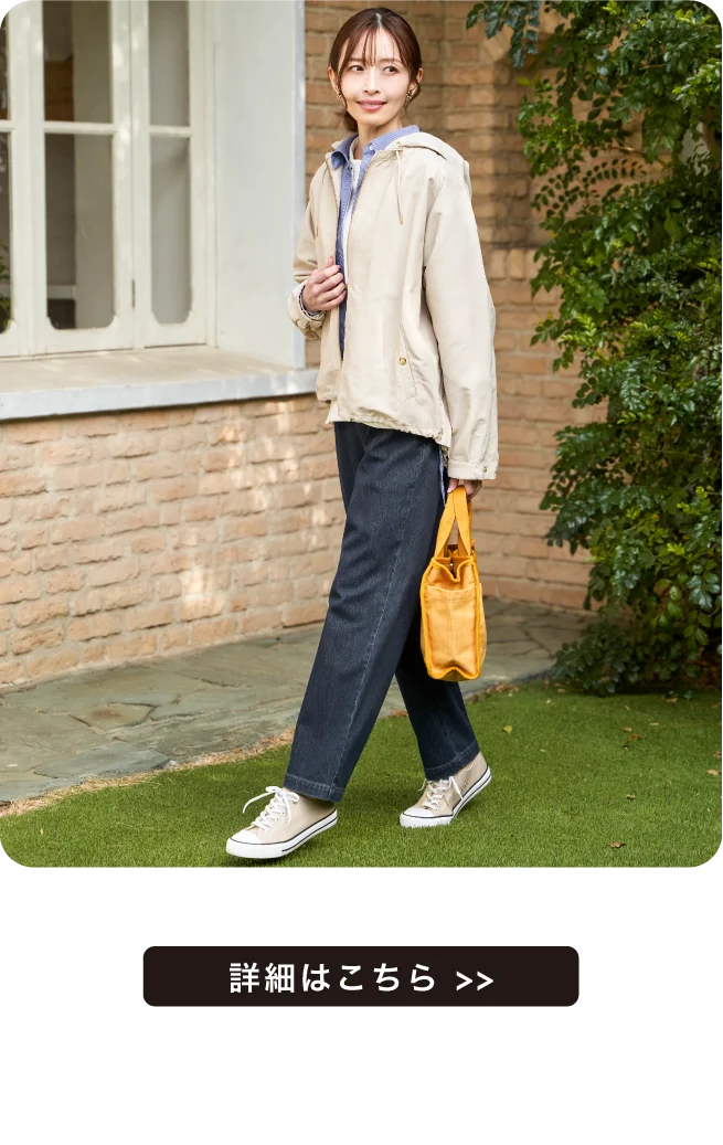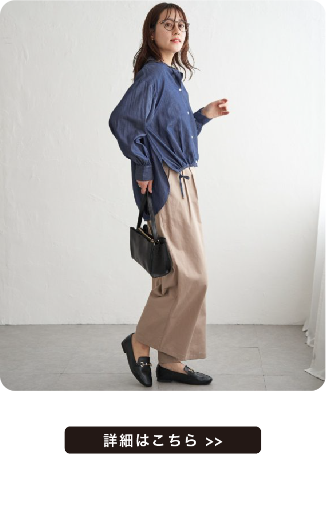 前裾にタックとドロストが入った立体的なデザインで、その日のスタイルに合わせてにアレンジができます。