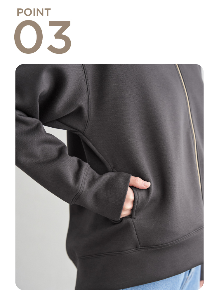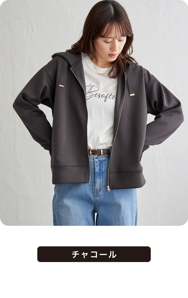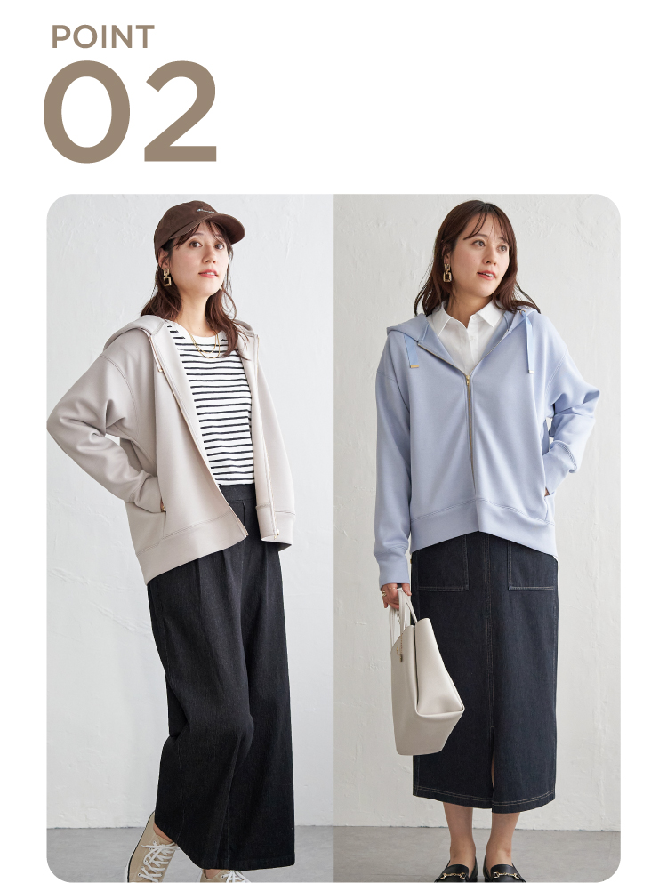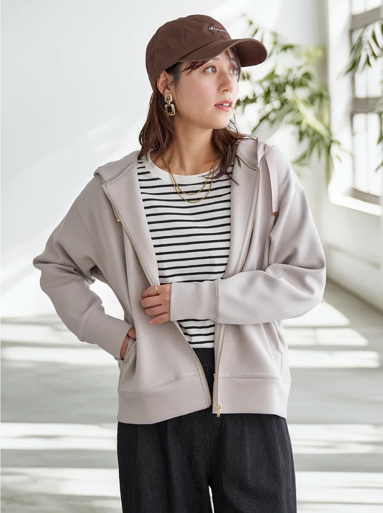 サッと簡単羽織りスタイルも、しっかりファスナーを上まで閉めてもOK◎