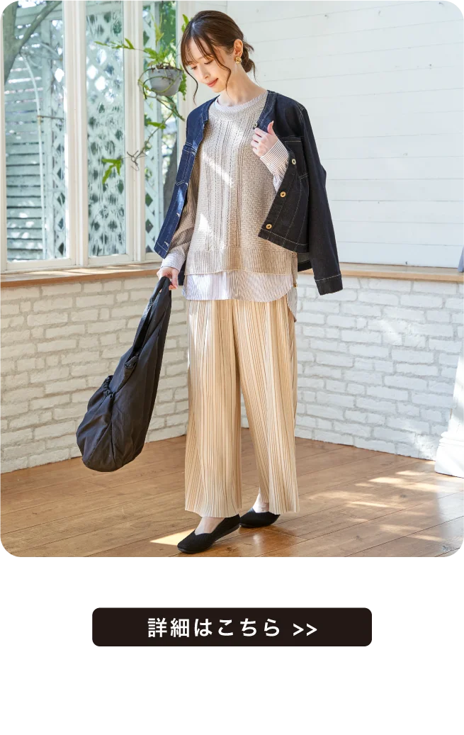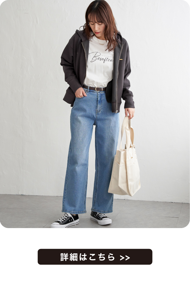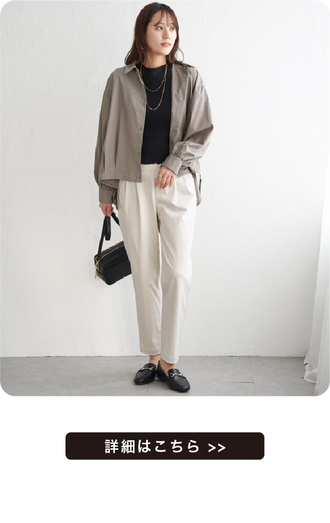着用しやすい丈ですが、前後のレングスに差を出すことで今っぽい見え方にしています。