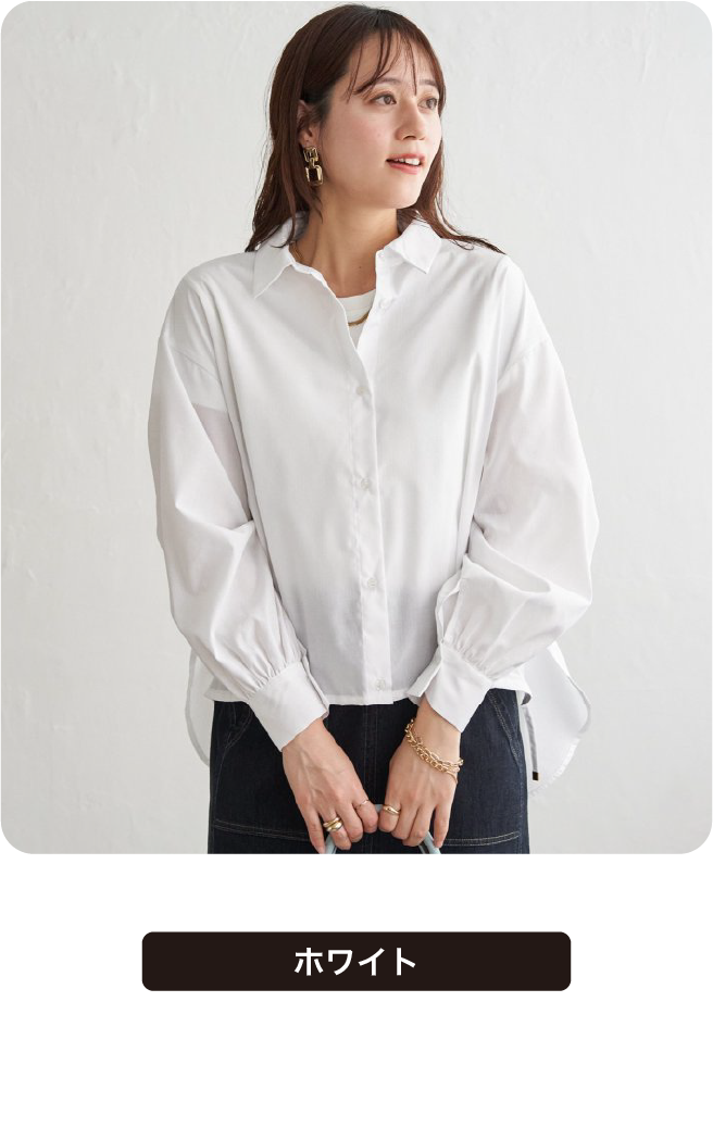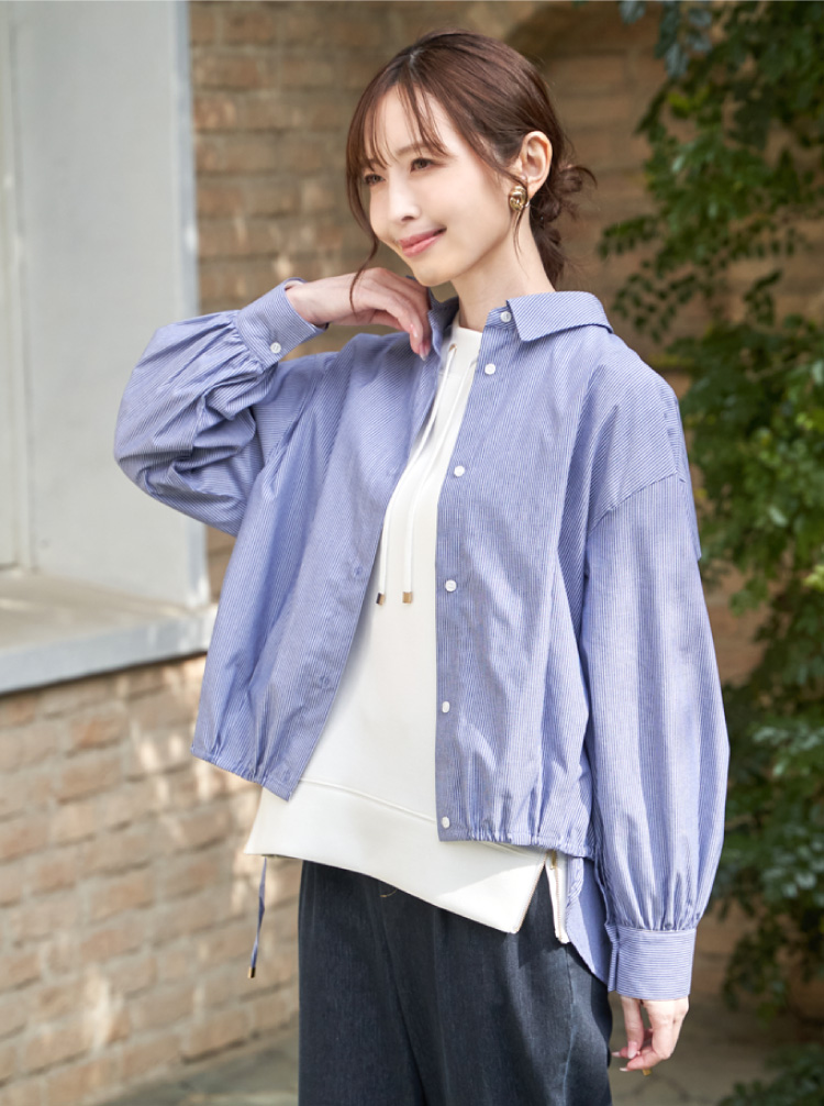 一枚でこなれ感が出せる、大人のスタイリングに取り入れやすいアイテム。トレンド感のある短丈風なシャツです。