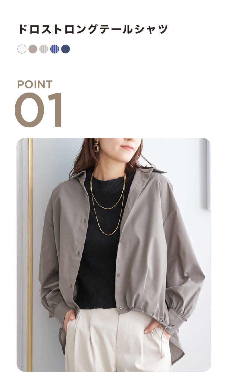 前後差のあるロングテールデザインで、短丈風のバランスが今っぽいシャツ。