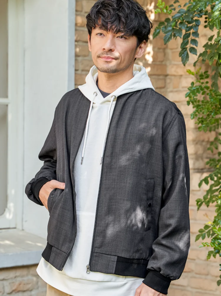 麻のような清涼感ある表情で、軽やかに羽織れるリネンライクブルゾン。イージーケア仕様で扱いやすく、Tシャツやシャツに重ねるだけで春らしい装いが完成します。軽量でストレスのない着心地と上品な印象を両立した、大人のための即戦力アウターです。