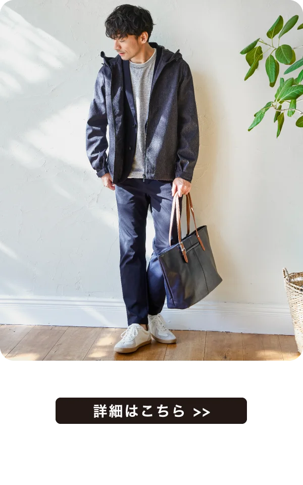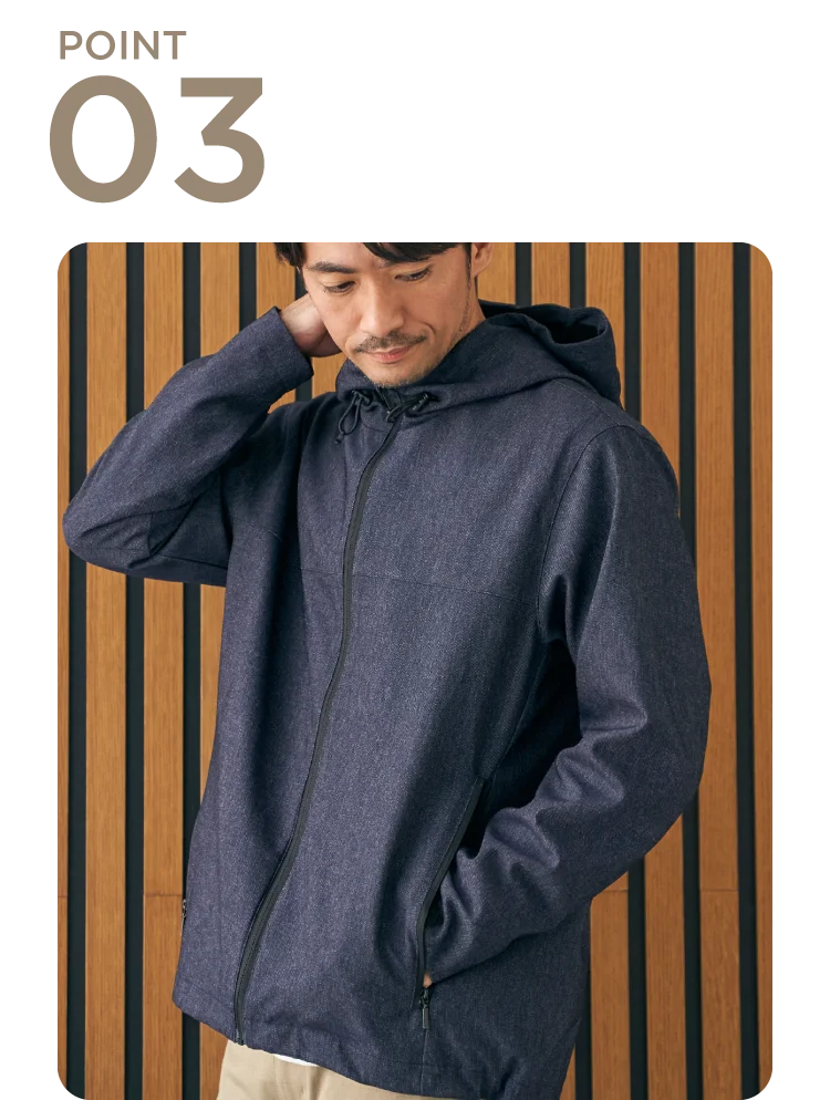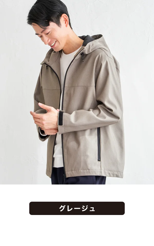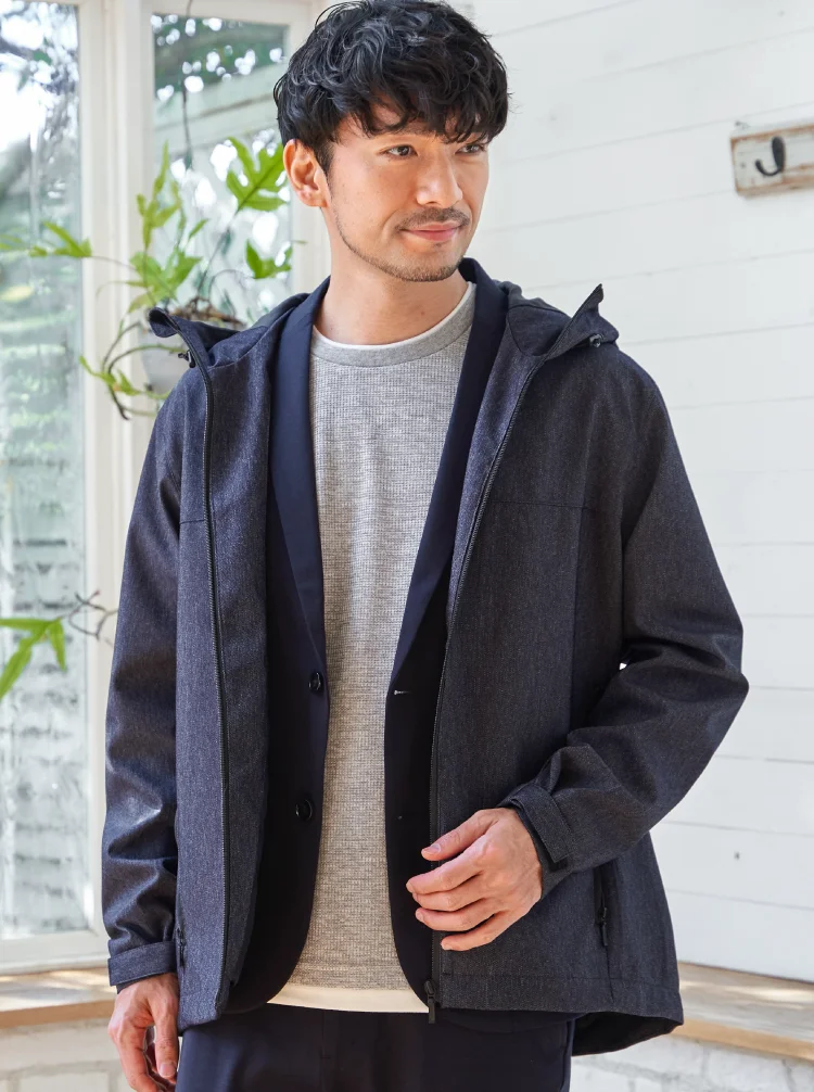撥水ポリエステル素材を使用し、突然の小雨や気温差にも対応。軽量でさらっと羽織れ、春のデイリーに活躍します。