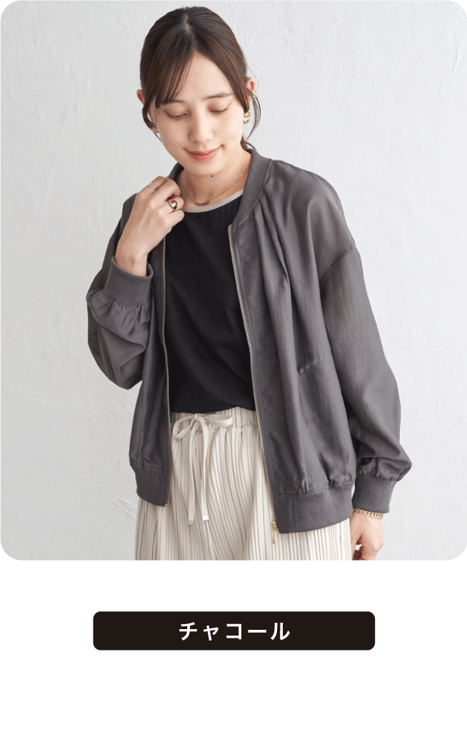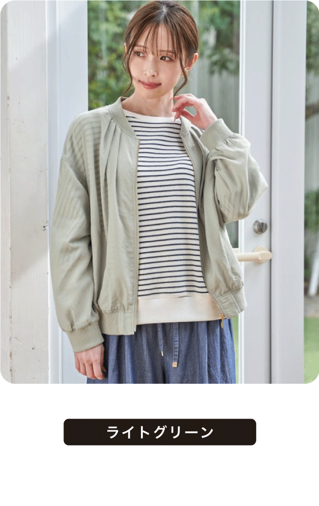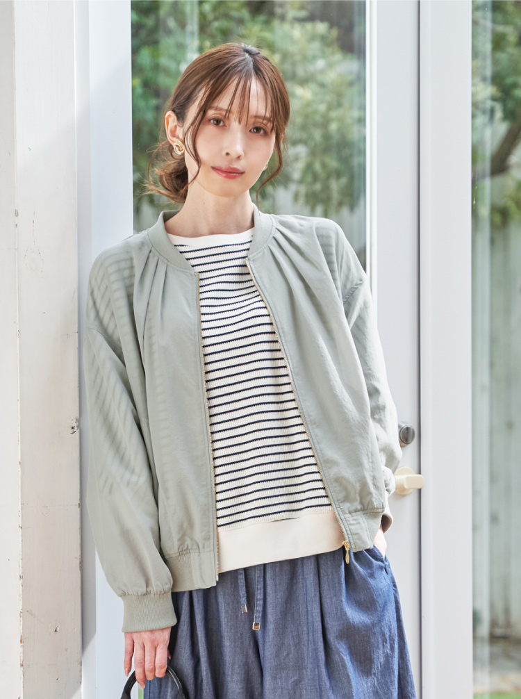 やわらかでシアー感のある素材と襟元のタックが女性らしいライトアウター。