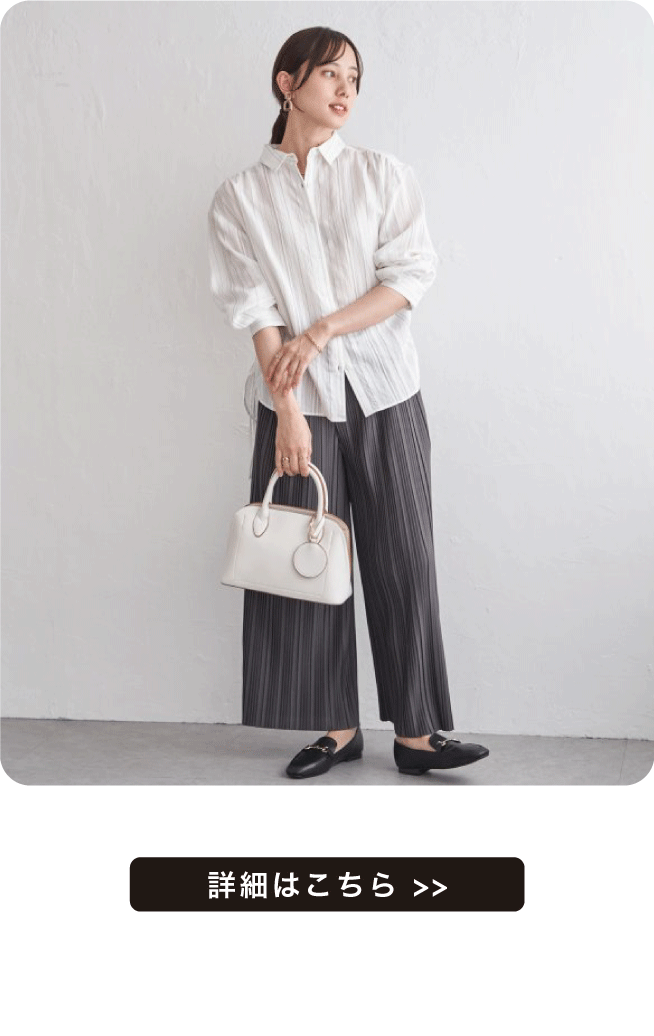 バンドカラーとボリューム感あるバックタックが女性らしいシルエット。