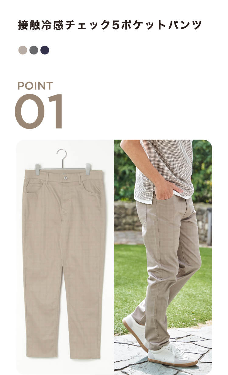 接触冷感チェック5ポケットパンツ