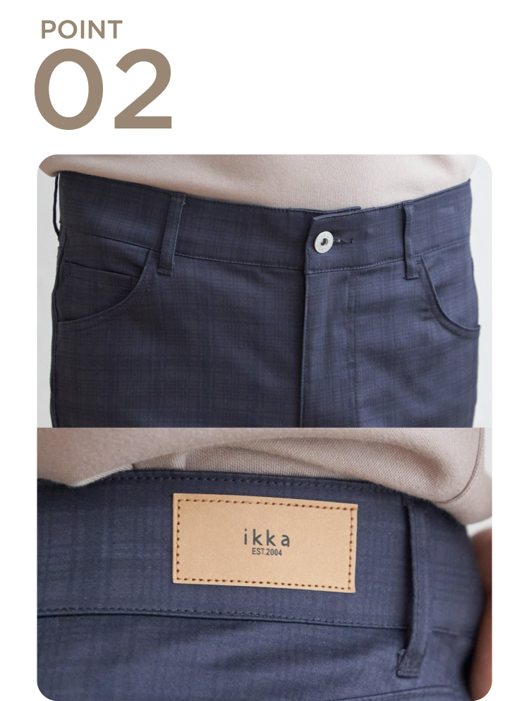 縦横ストレッチであらゆる動きにしなやかにフィット。座る・歩く・しゃがむ動作もストレスを感じにくく、一日中快適です。
