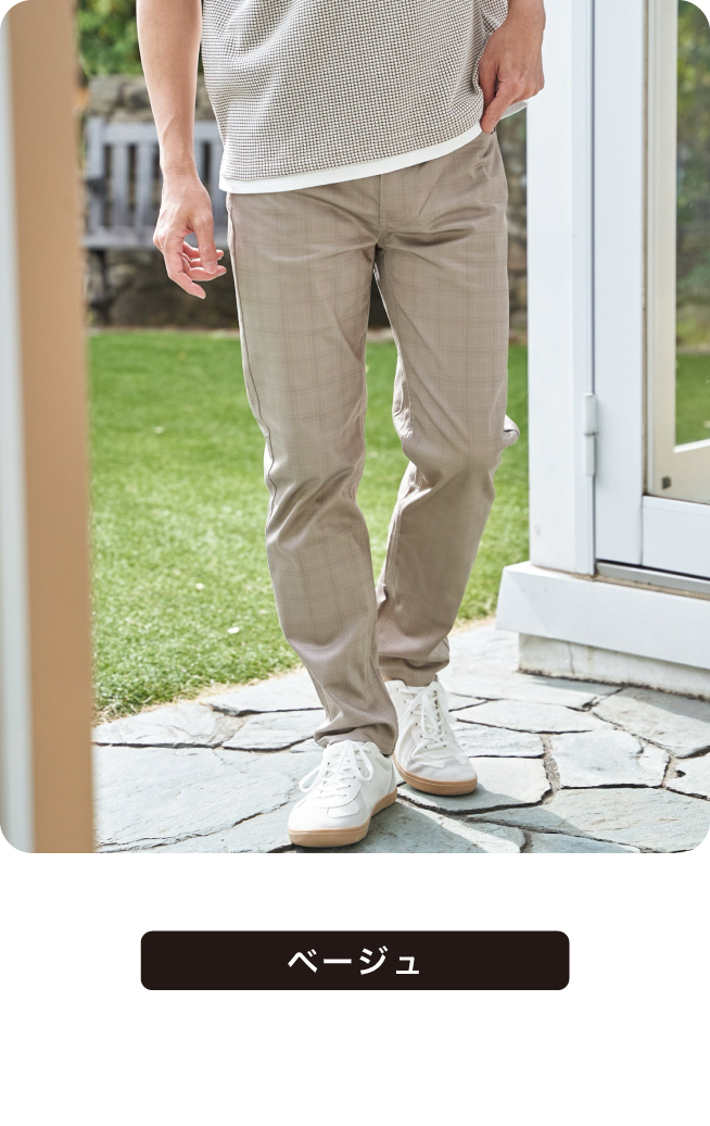 接触冷感・ストレッチ素材で、夏場も快適な履き心地を叶えてくれるイージーパンツ。ON・OFF使える落ち着いたチェック柄で、コーデに奥行きを生み出します。