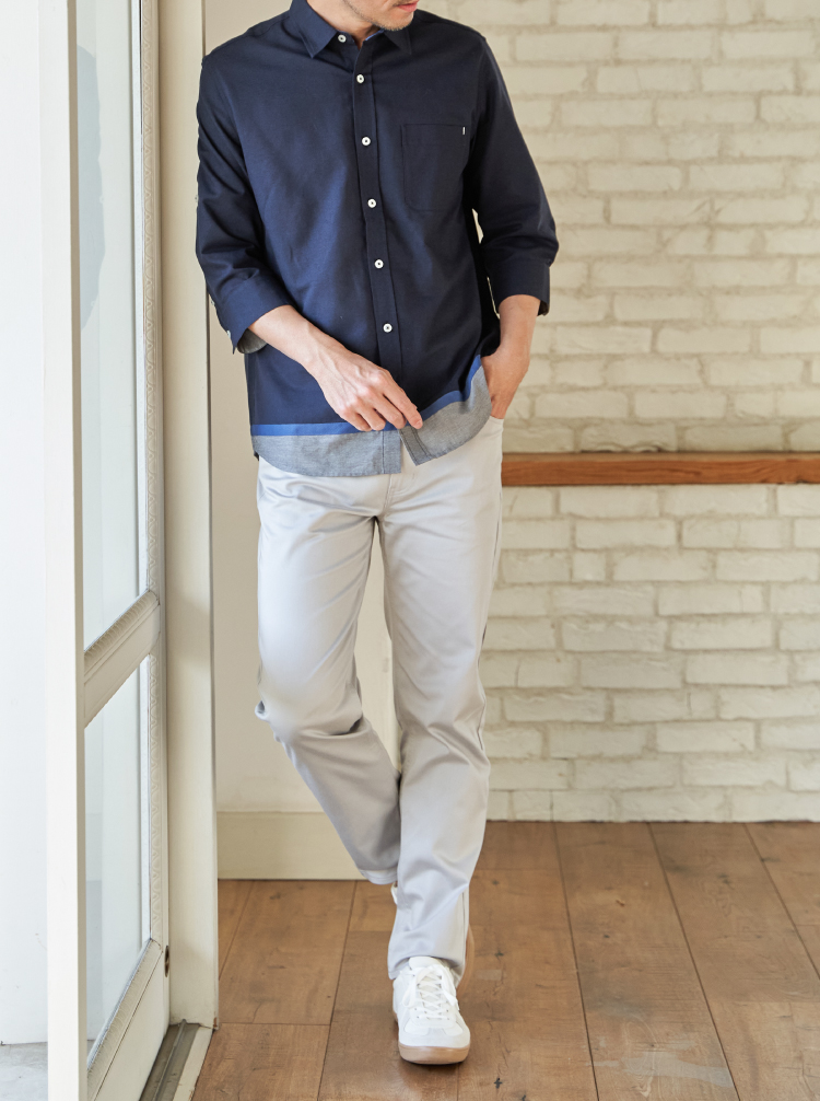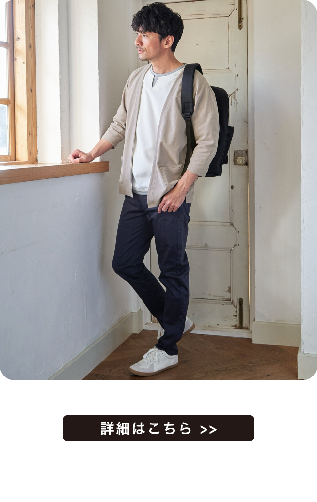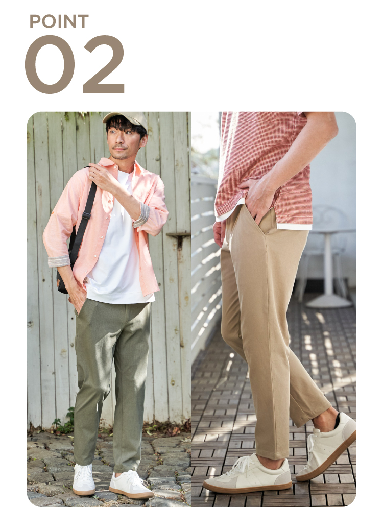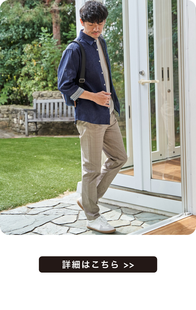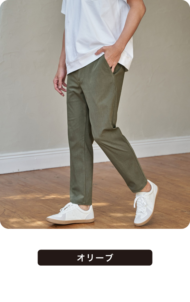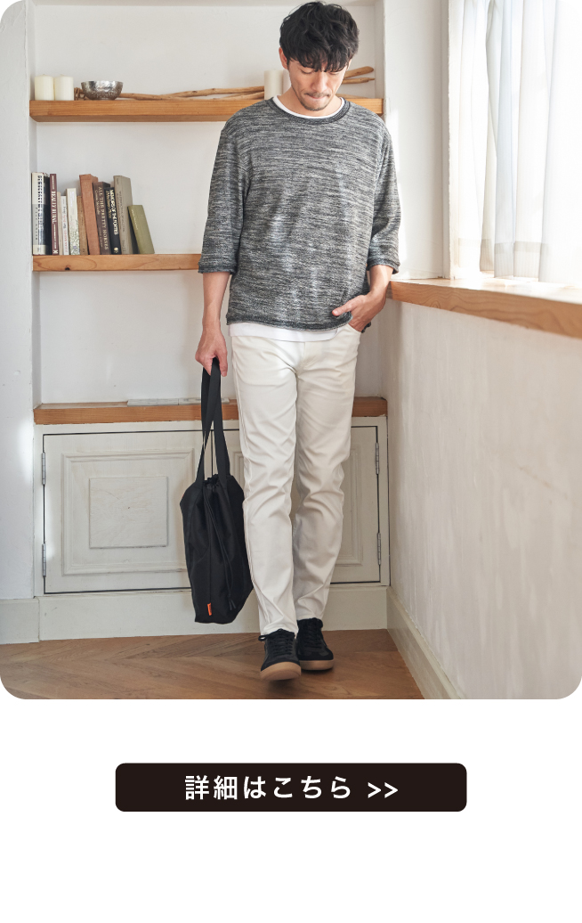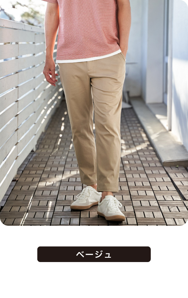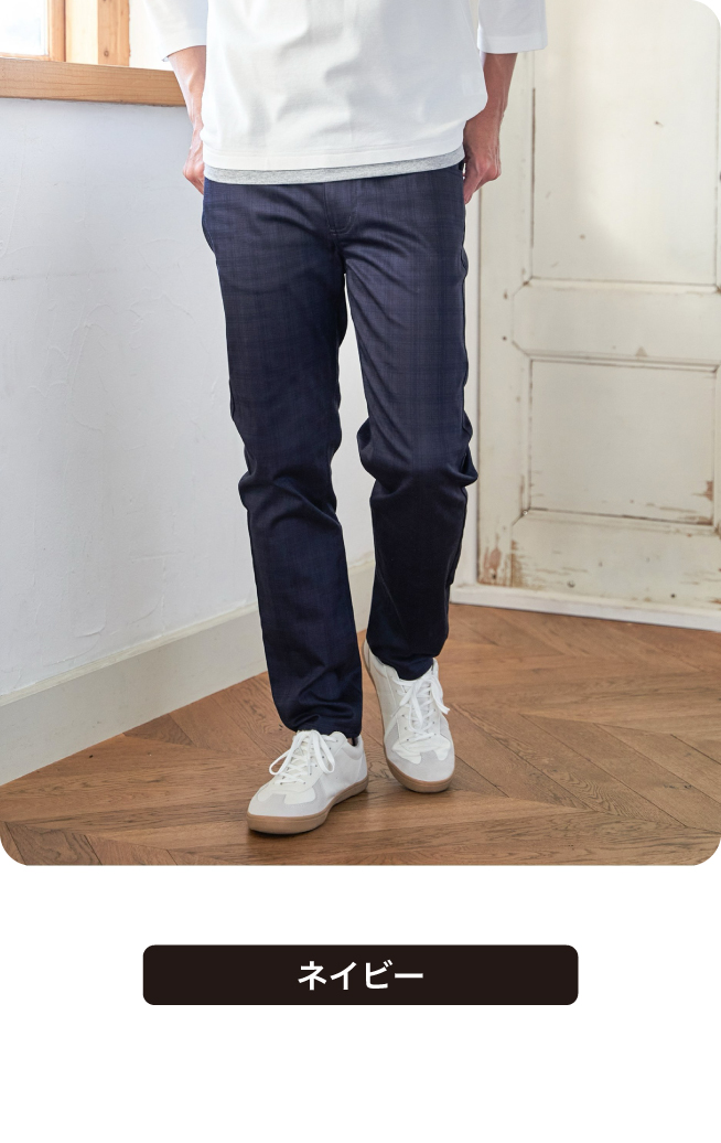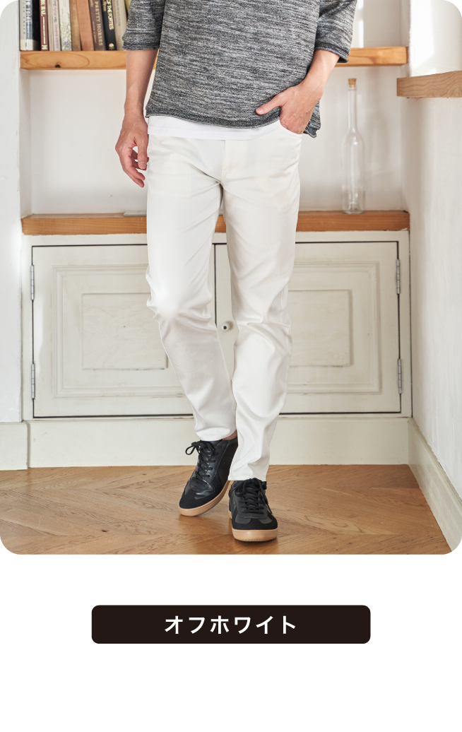 ストレスフリーなストレッチ素材の定番パンツ