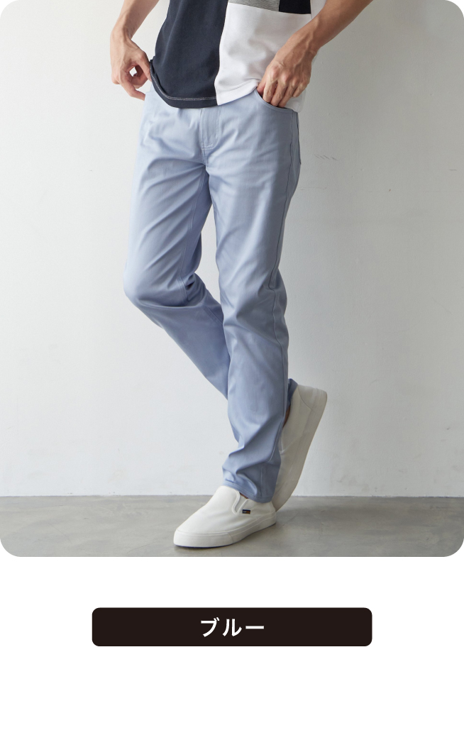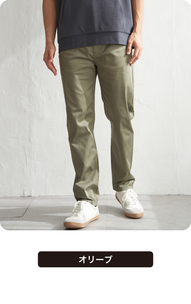 着回し力の高い無地デザイン。ベーシックな5ポケットでビジカジから休日まで、幅広く対応します。