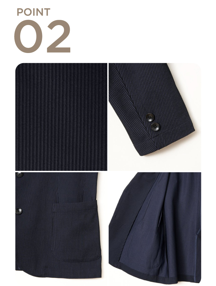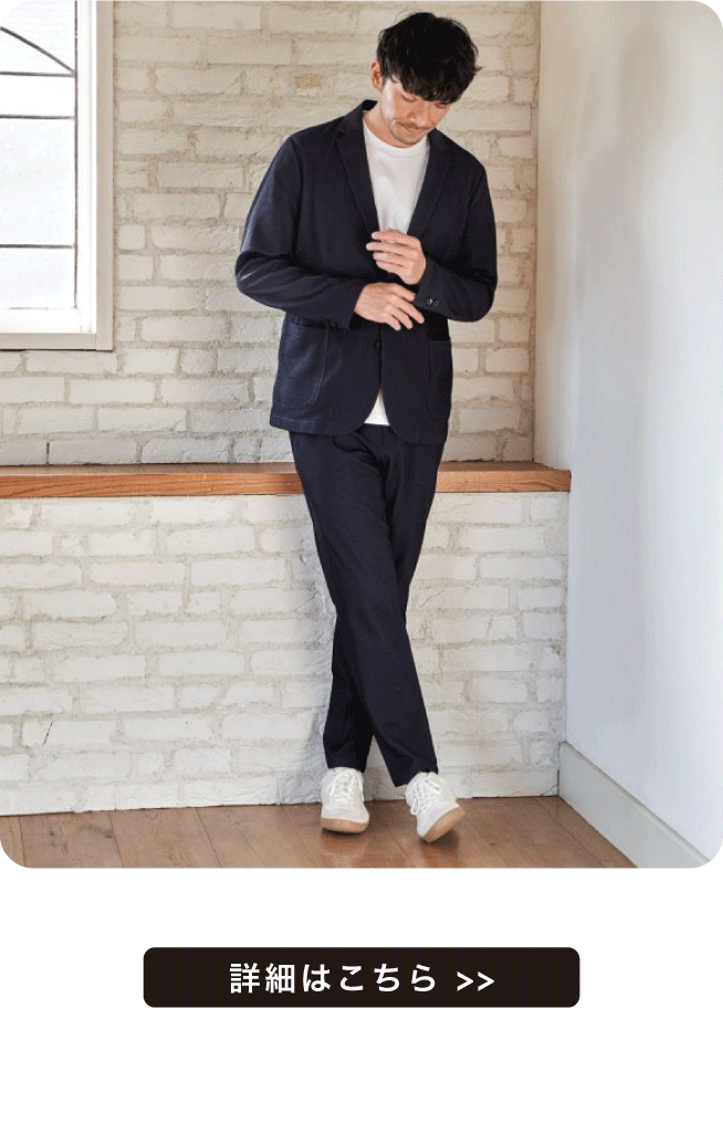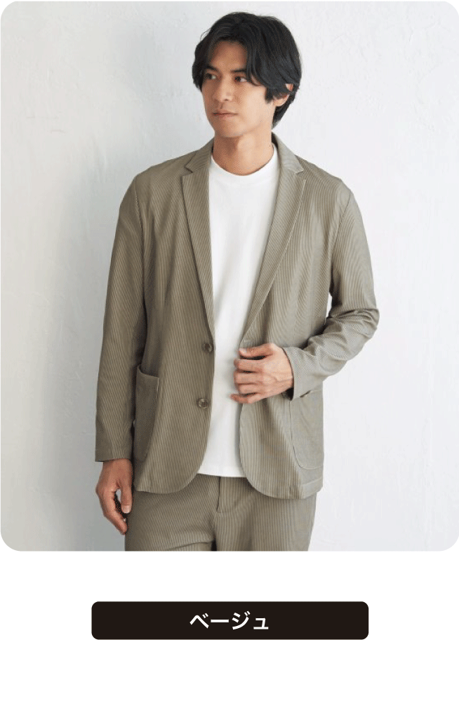 凹凸感のあるサッカージャージー素材を使用したセットアップ。清涼感があるのでこれからの季節にぴったりです。Tシャツの上にラフに羽織れば週末スタイルに、シャツと合わせればオフィスシーンにもと幅広く着回せます。