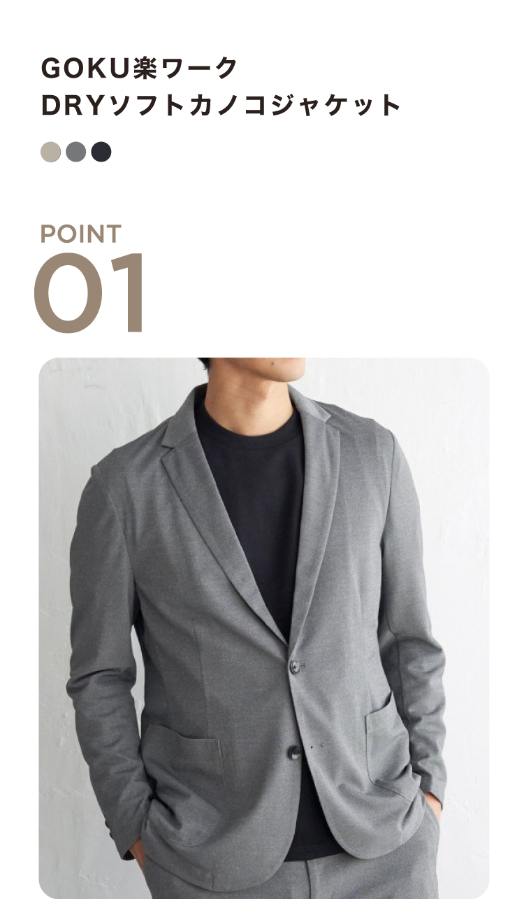 シャリ感とソフトな風合いを併せ持つ、DRYソフトカノコ素材を使用したセットアップ。肌離れのよい鹿の子素材で、暑い季節も快適に着用できる軽やかな仕上がりです。