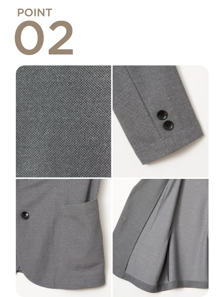 シャリ感とソフトな風合いが絶妙な鹿の子素材。また今まで表現できなかった杢(メランジ)表現も。様々なシーンで活躍するシンプルなテーラードジャケットです。