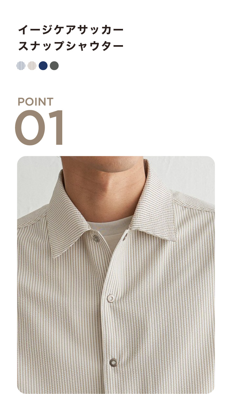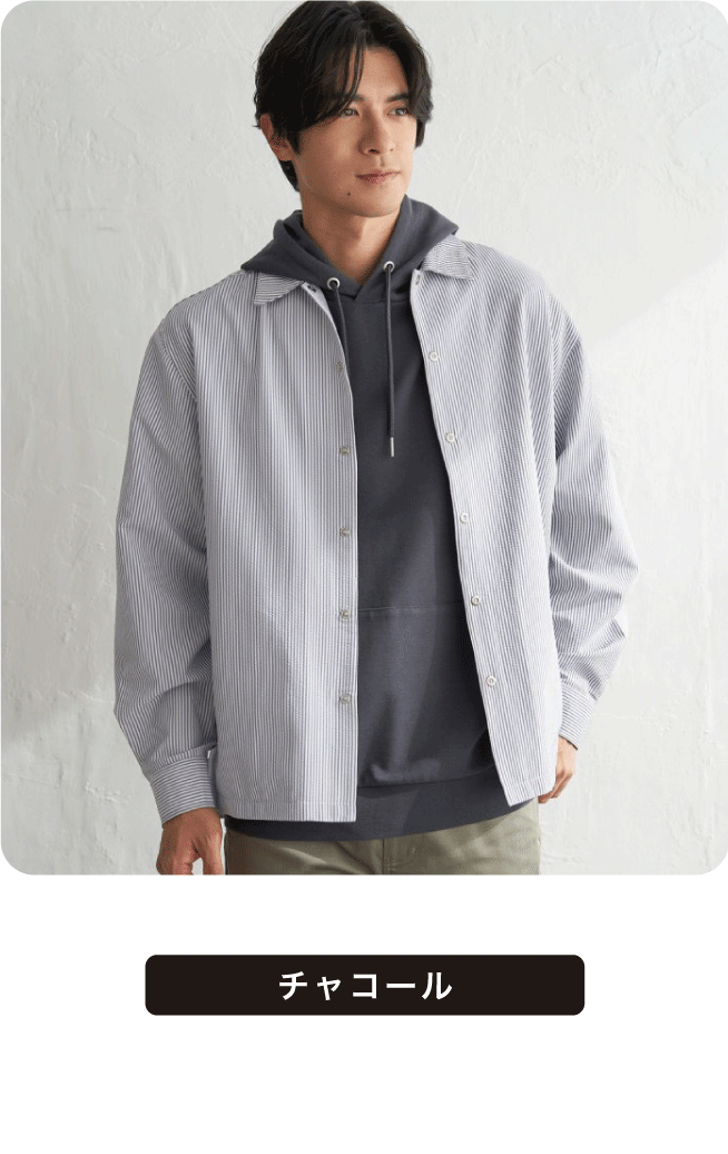 スナップボタン仕様により着脱しやすく、Tシャツやポロシャツに重ねるだけで装いが整う一着です。