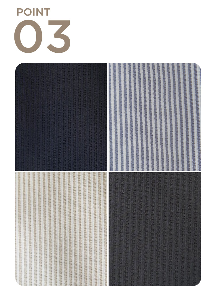 今年は、チャコール・ネイビーもシャドーストライプにして、好調なストライプを拡大しました。