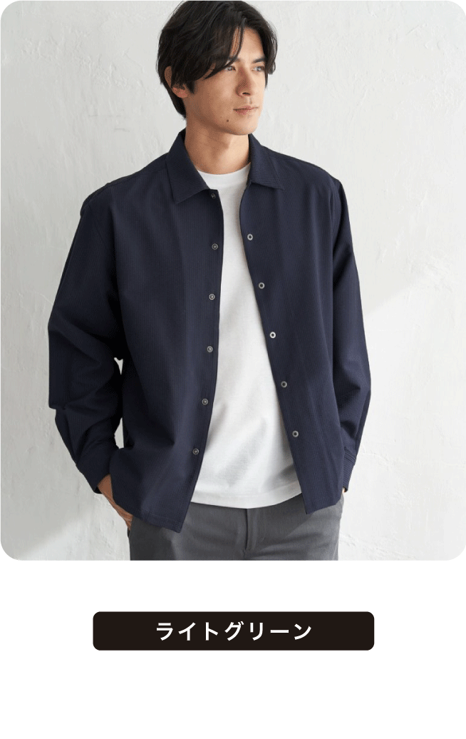 ¥5,690¥6,259サラッとして肌離れのよいポリエステルサッカー素材を使用した、イージーケア仕様のスナップシャウター。暑い季節も軽やかに羽織れる快適な着心地です。シャツとアウターの中間的な存在として、一枚着にも羽織りにも対応してくれます。