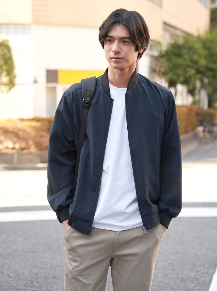麻のような清涼感ある表情で、軽やかに羽織れるリネンライクブルゾン。イージーケア仕様で扱いやすく、Tシャツやシャツに重ねるだけで春らしい装いが完成します。軽量でストレスのない着心地と上品な印象を両立した、大人のための即戦力アウターです。
