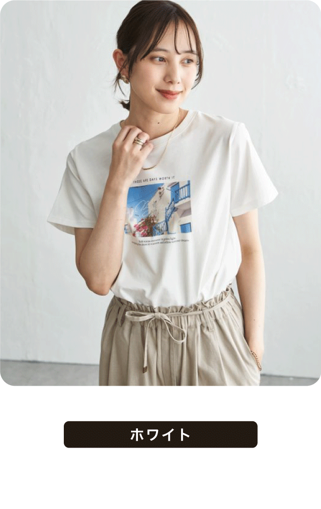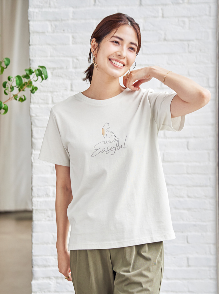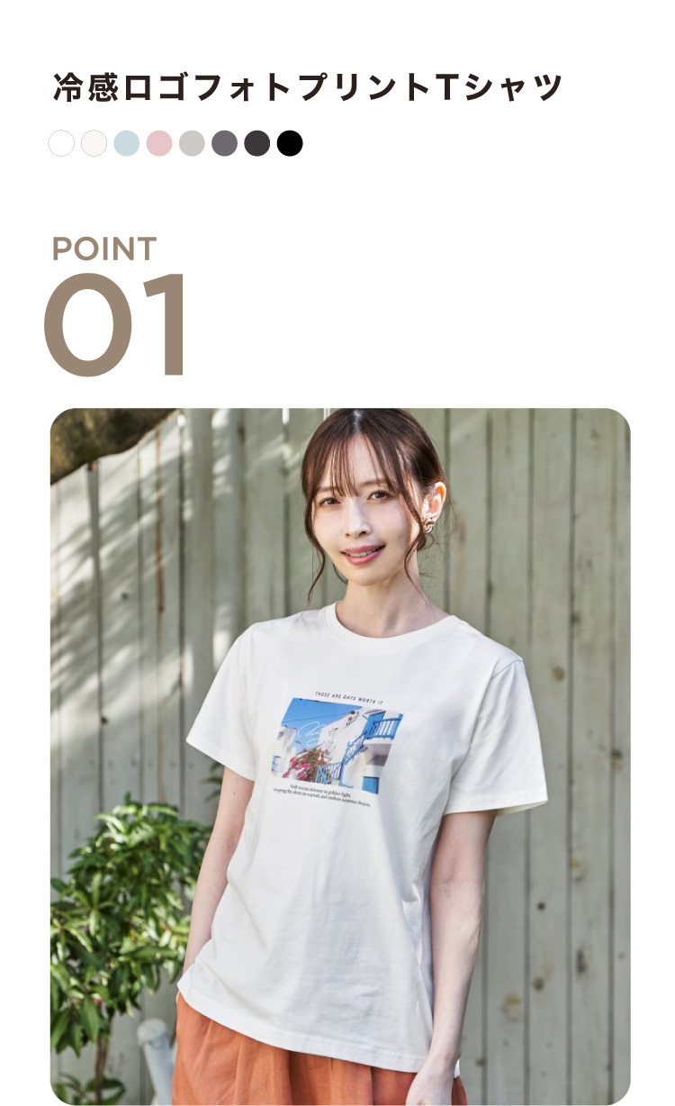 きれいめな印象で着られるコットン100%の素材を使用したロゴフォトプリントTシャツ。接触冷感機能付きで、暑い季節も快適です。カジュアルになりすぎないデザインで、日常のスタイリングに取り入れやすい一枚。
