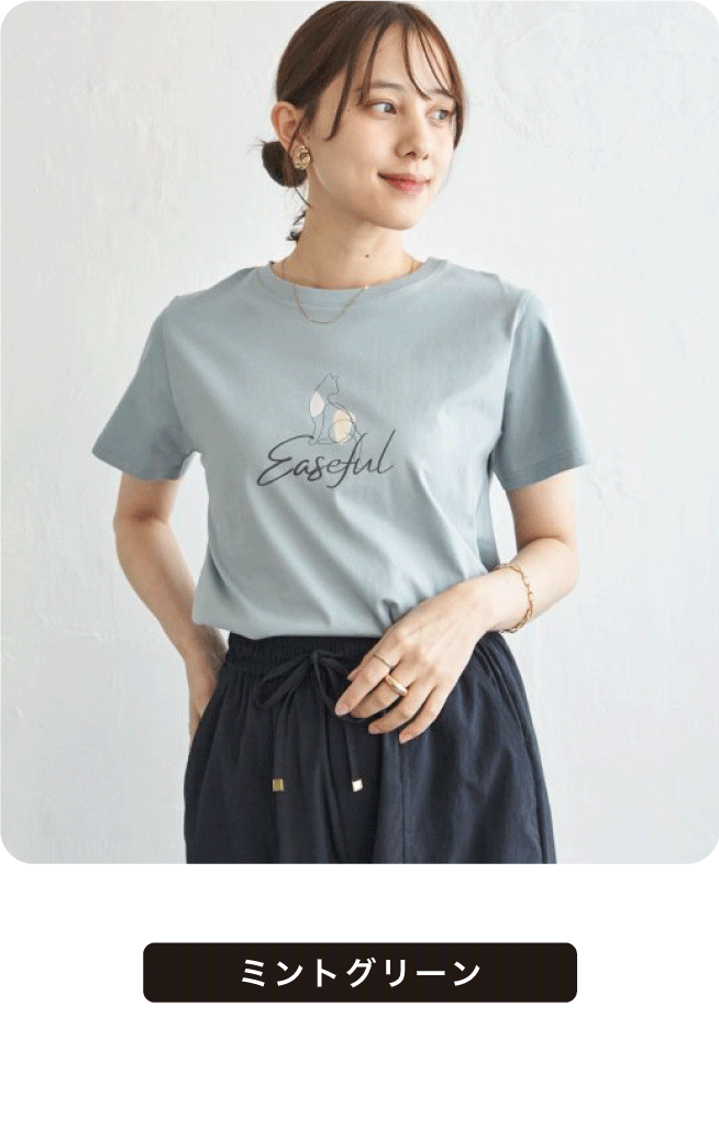 衿ぐりがよれにくいようにステッチを追加。肌触りがよく、見た目もきれいめ見えする接触冷感機能付きのカットソーです。