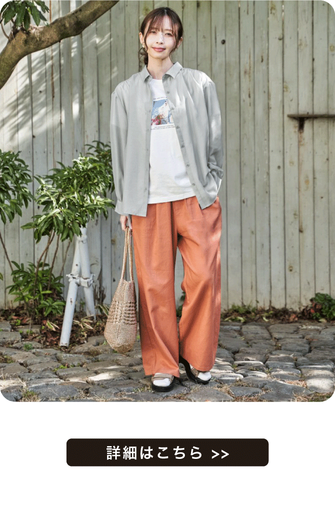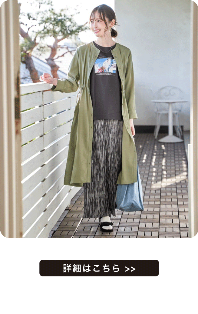 襟元のスピンドルやハトメ使いが、シンプルな中にほどよいアクセントをプラス◎ラフすぎず、大人カジュアルにちょうどいいバランスで着こなせます。