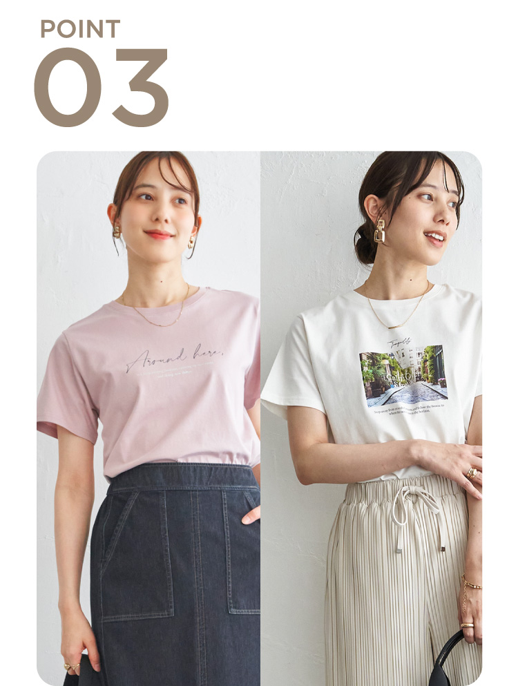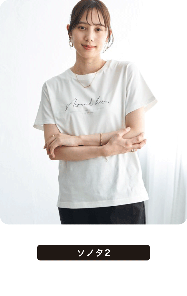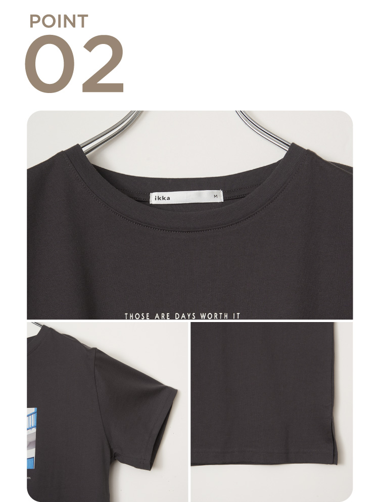 ほどよいコンパクトシルエットで、1枚でも カーデのインナーとしても使えるTシャツです。