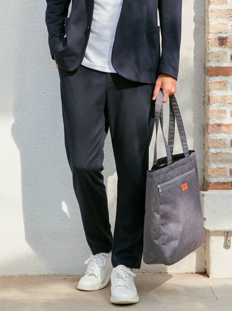 ウエストイージー仕様のテーパードシルエット。大人のカジュアルスタイルに馴染むので、普段着のボトムとしても活躍します。