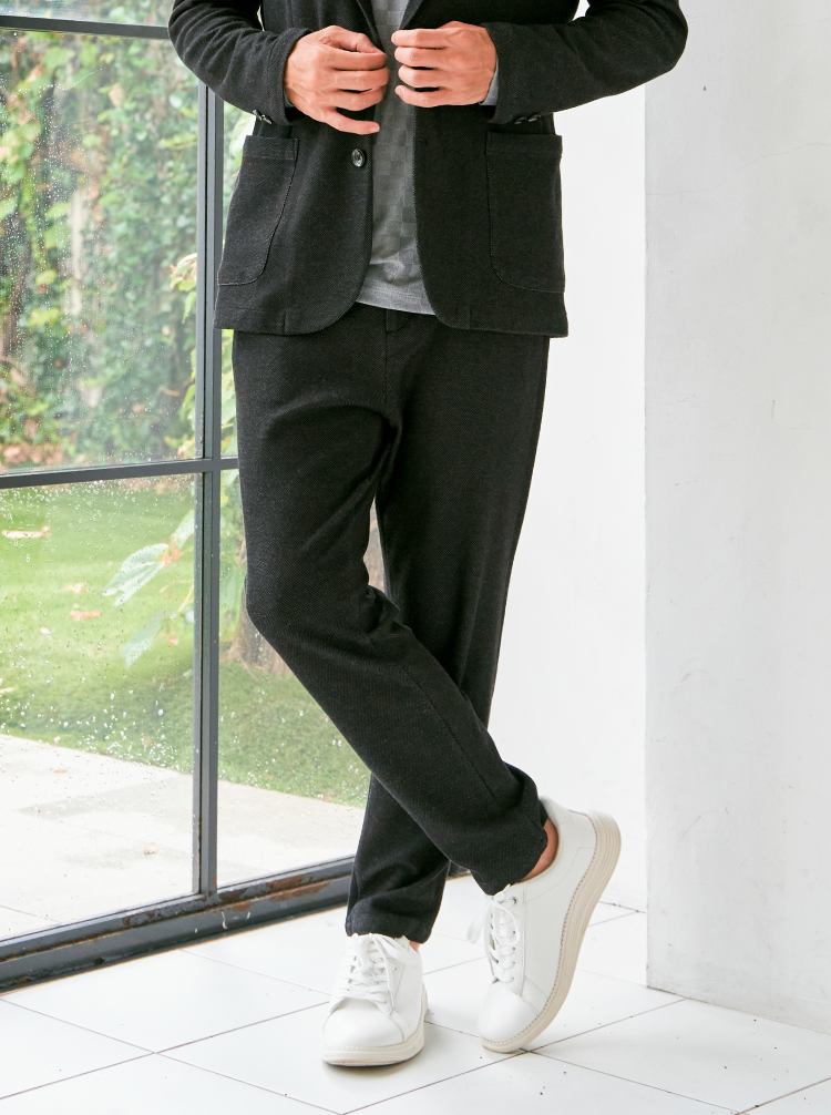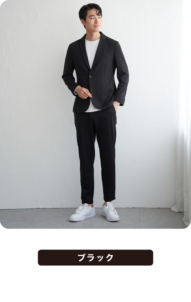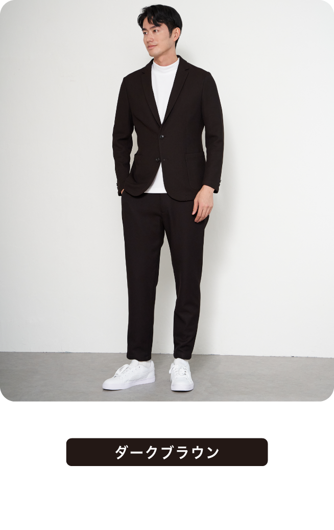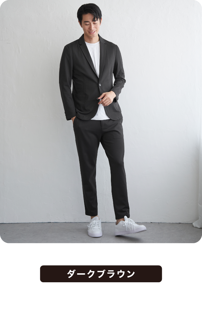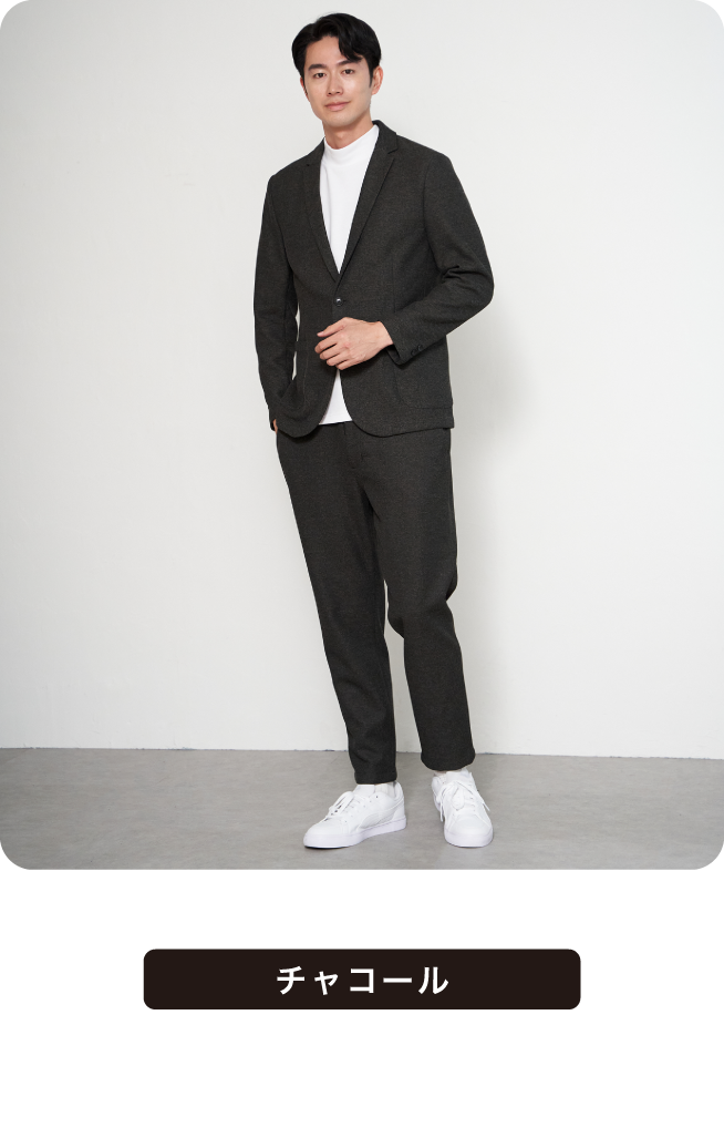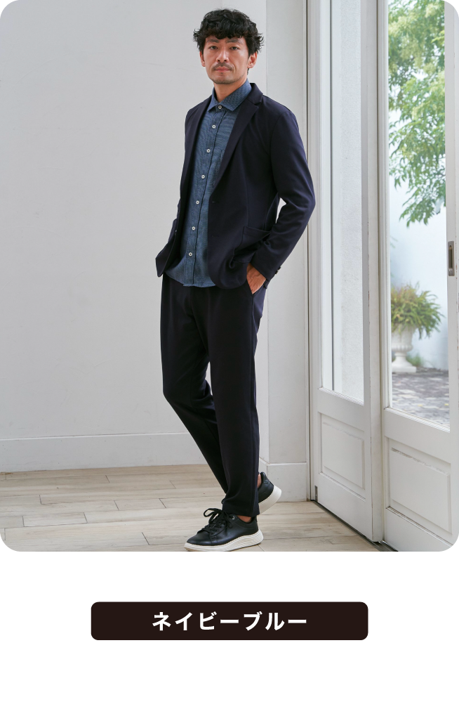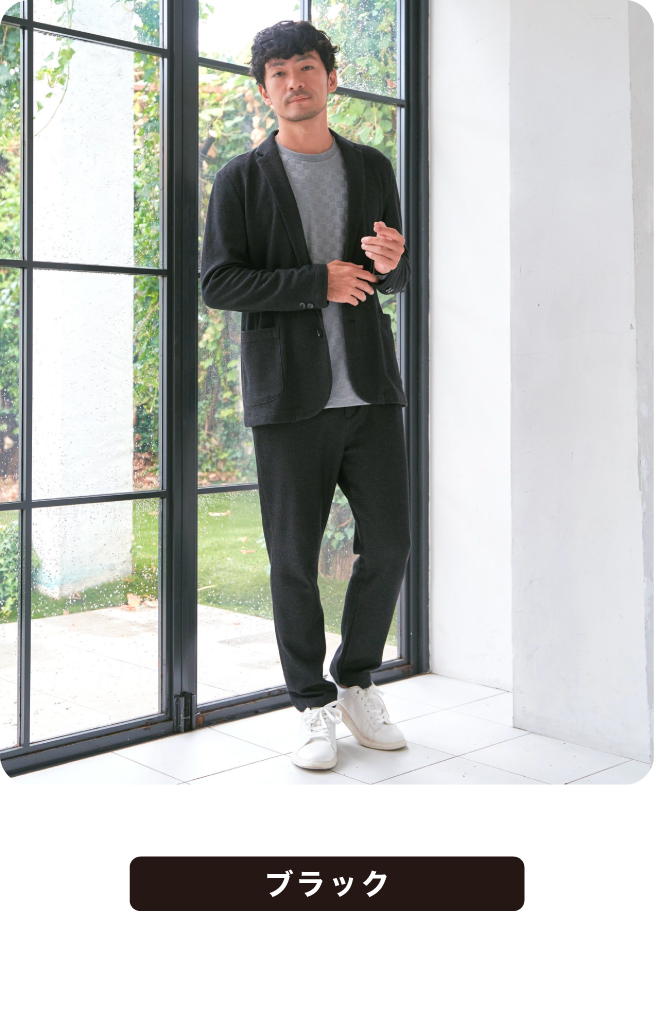 ウール見えの上品さと快適さを両立したセットアップ。シンプルなデザインで幅広いスタイリングに対応。オンでもオフでも活躍する、頼れる一着です。これからの寒い季節にはあたたかな印象をもたらします。