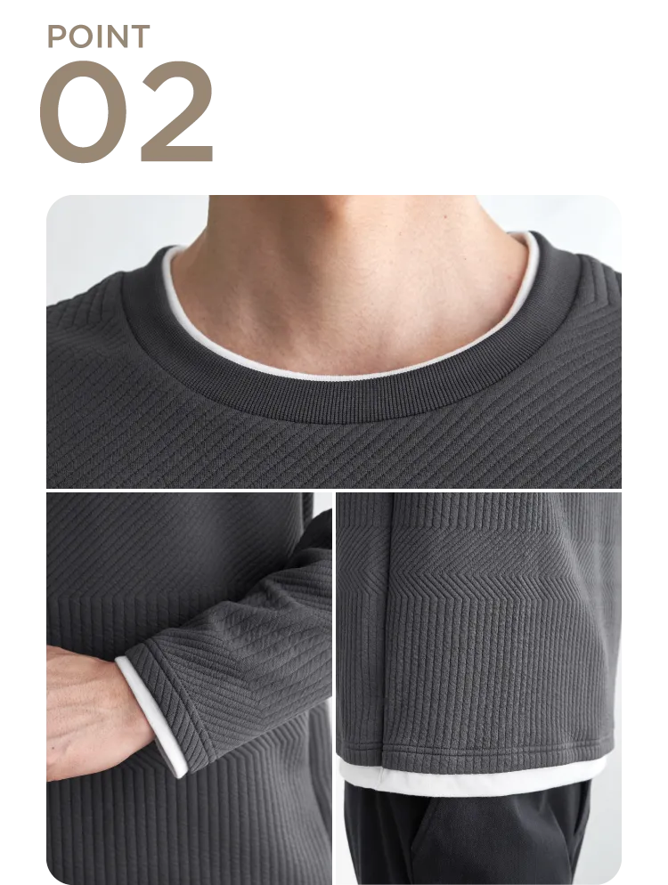長袖Tシャツのレイヤード見えデザインなので、重ね着特有のゴワつきなし。インナーとしても単品としても、着こなしの手間を減らせます。