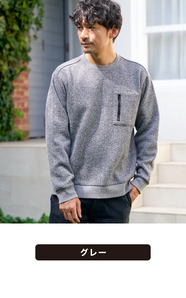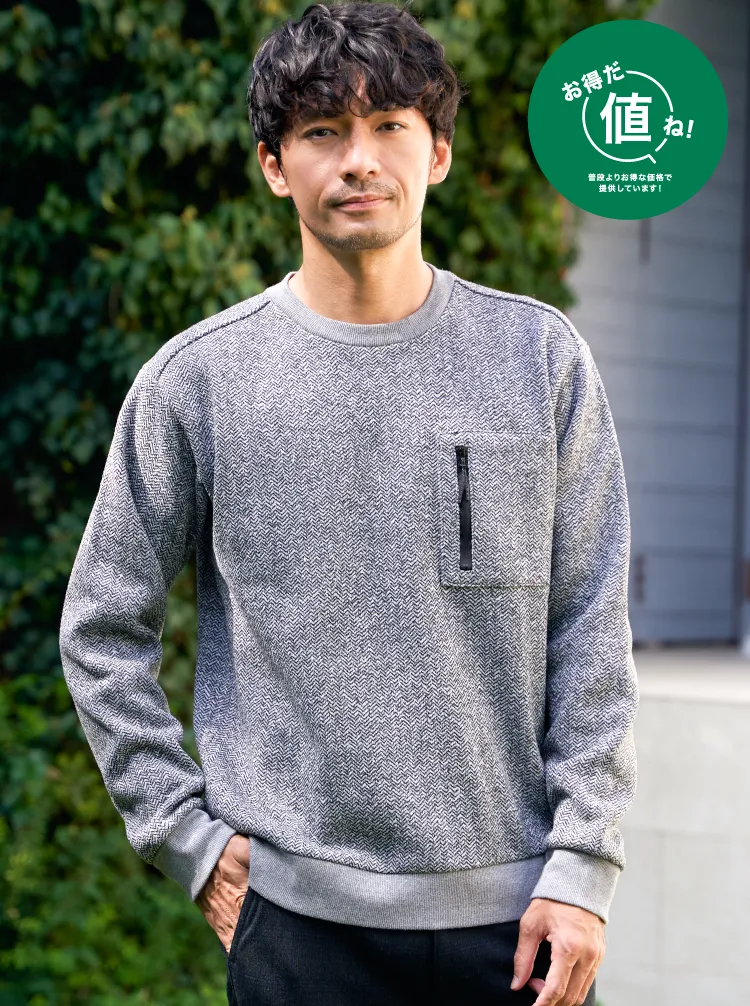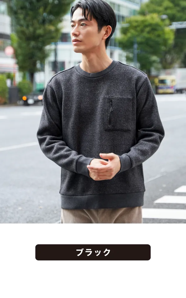 ウール見えの質感と、裏起毛のしっかり暖かさを両立した冬向きトップス。胸ポケットのファスナーがアクセントになり、シンプルながらもほどよいデザイン性で着こなしの幅が広がります。着回ししやすいレギュラーサイズだから、デイリーにサッと着られる頼もしい一枚です。