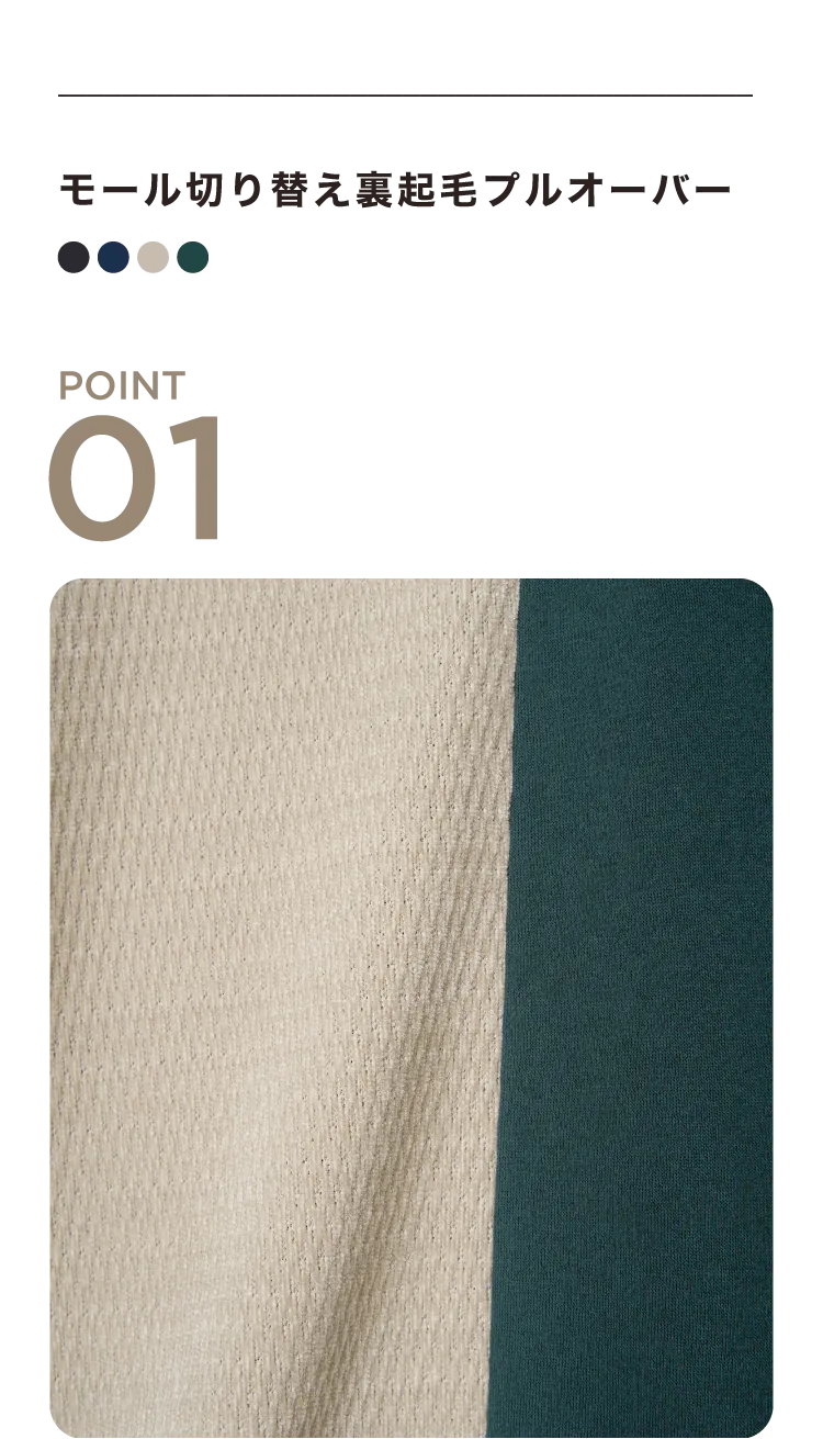 モール切り替え裏起毛プルオーバー