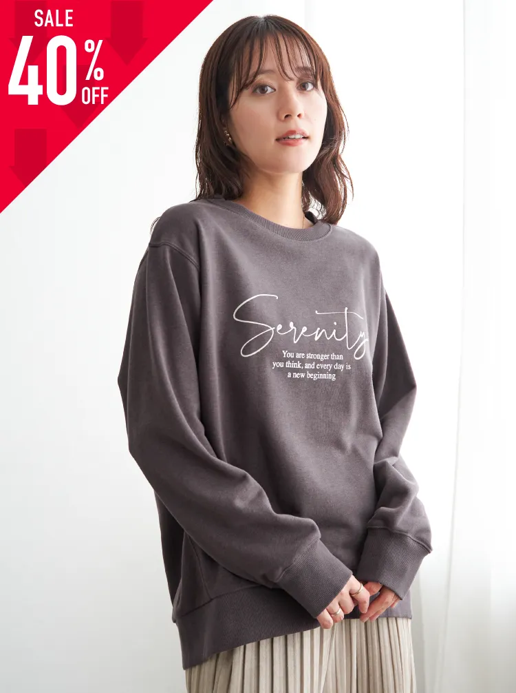 コンパクトすぎないバランスの新シルエットで、合わせるボトムを選ばない着回し力が魅力。裏毛素材で着ぶくれしにくく、日常使いしやすい一枚に仕上がっています。さりげない箔プリントが大人らしさを添え、毎日のスタイリングに自然になじみます。